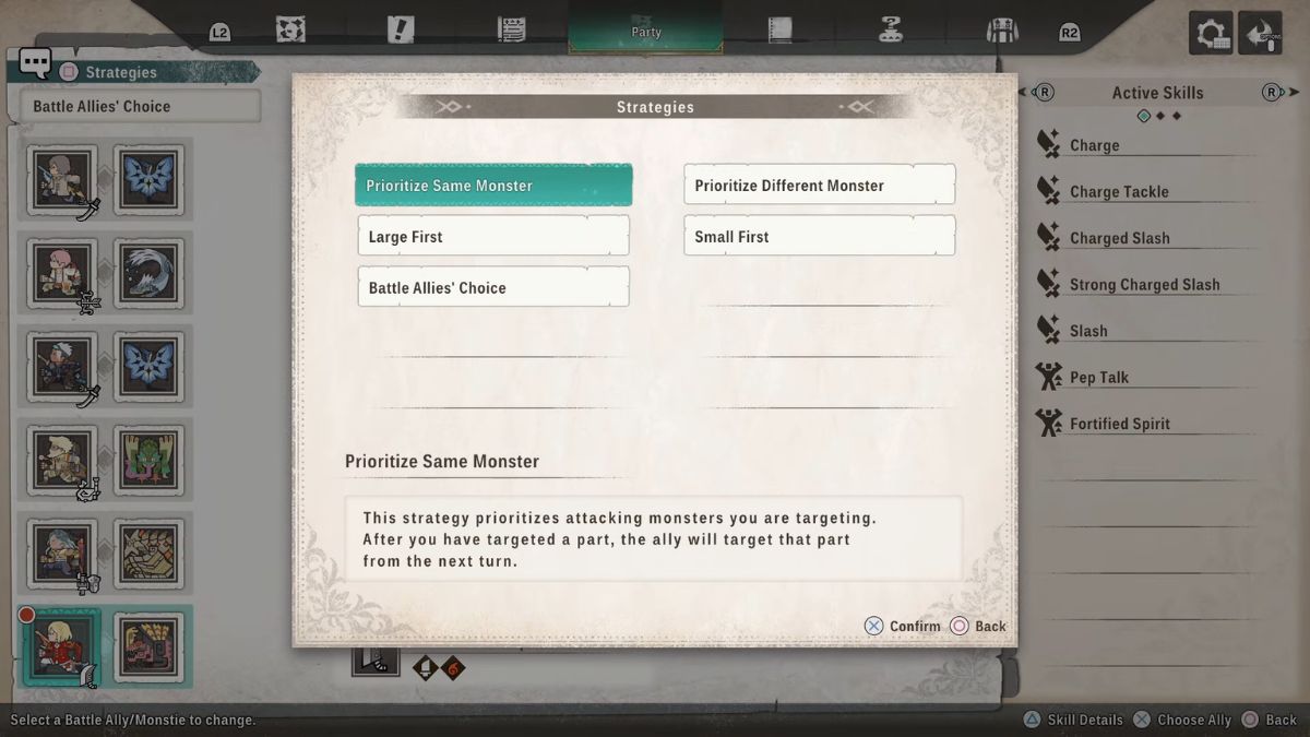 Did you know you can customize how your battle allies behave? You can change their strategies by selecting the “Change Battle Allies” option in the menu, then choosing “Strategies” at the top-left of the screen. This lets you tell them to focus on the same enemy as you, switch to a different target, or act in a way that fits how you like to play. You won’t directly control your allies, but you can influence what they do with these settings.