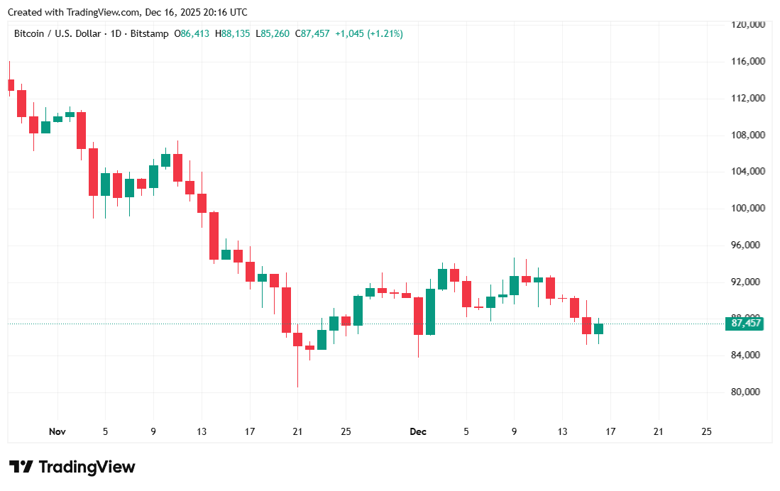 Bitcoin was priced at $87,561.91 at the time of reporting, representing a 1.8% increase since Monday, but also reflecting a 6.46% decline over the past seven days, Coinmarketcap data shows. The cryptocurrency’s price fluctuated between $85,381.69 and $88,170.10 over the last 24 hours. 📈📉