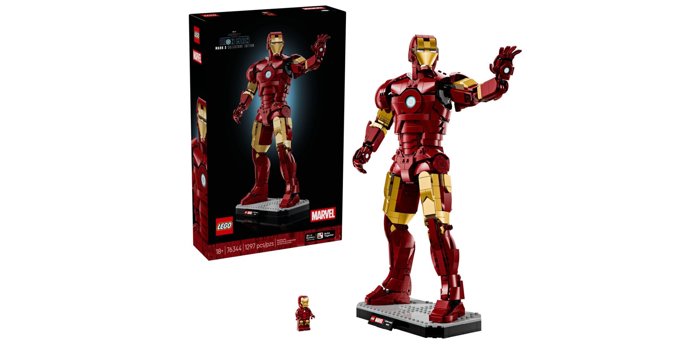 Even though Iron Man is no longer appearing in Marvel movies, you can still enjoy having the character close by. LEGO’s Iron Man Mark 3 Collectors’ Edition is a special set perfect for any Iron Man enthusiast. This impressive build stands over 15 inches tall and is made up of 1,297 pieces.