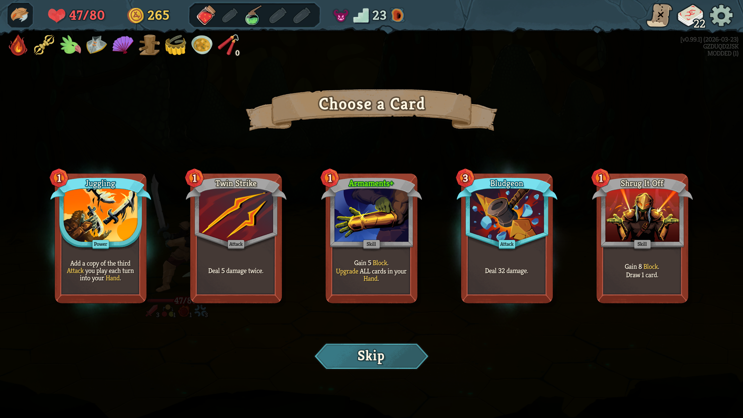 The mod ‘More Card Rewards’ by Emo Used HM01 increases the number of cards you receive as a base reward from three to five. This change doesn’t affect any other part of the game, so its impact is small. However, getting more cards can be very helpful when testing and fine-tuning the game.