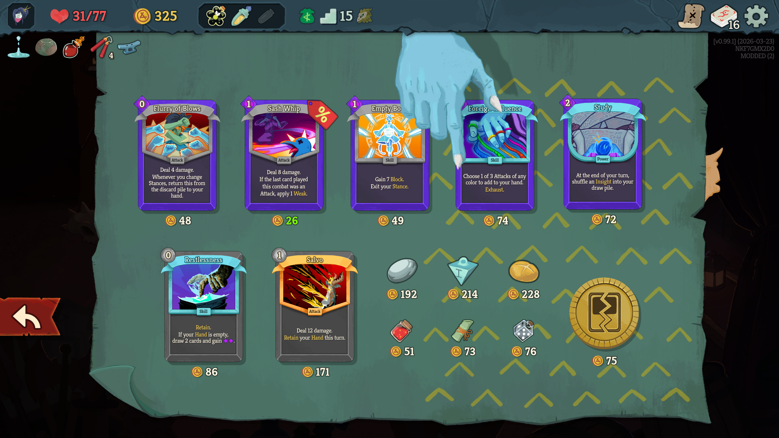 Okay, so I found this awesome mod called QuickRestart by Jiesi Luo, and seriously, it’s a lifesaver. Basically, if a battle or event is going badly, I can just hit F5 and instantly restart it! It resets everything – my cards, health, relics – back to how it was when I first entered the room. The best part? It’s super smooth – just a quick fade to black and I’m back in, ready to try again. It’s a total game changer!