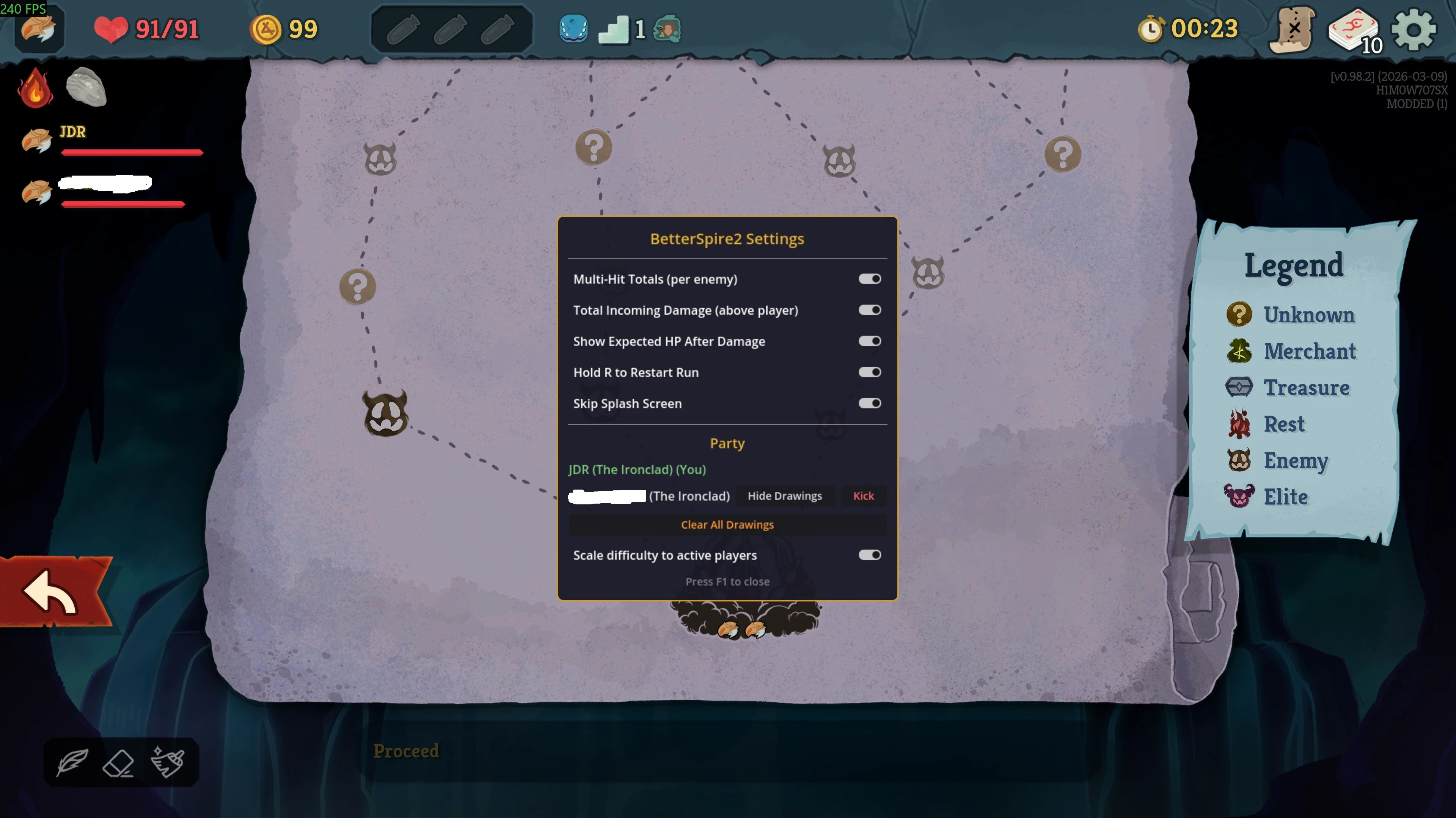 BetterSpire2 is a simple mod created by JDR that improves your Slay the Spire experience without changing how the game is played. Unlike many mods, it works safely in multiplayer. It comes in two versions: a full version with extra features, and a lighter version. The full version lets you quickly restart a run (by holding the ‘R’ key), replay the last fight (by double-tapping ‘R’), kick players from a multiplayer game, adjust the game’s difficulty, and automatically confirm choices when discarding or keeping cards.