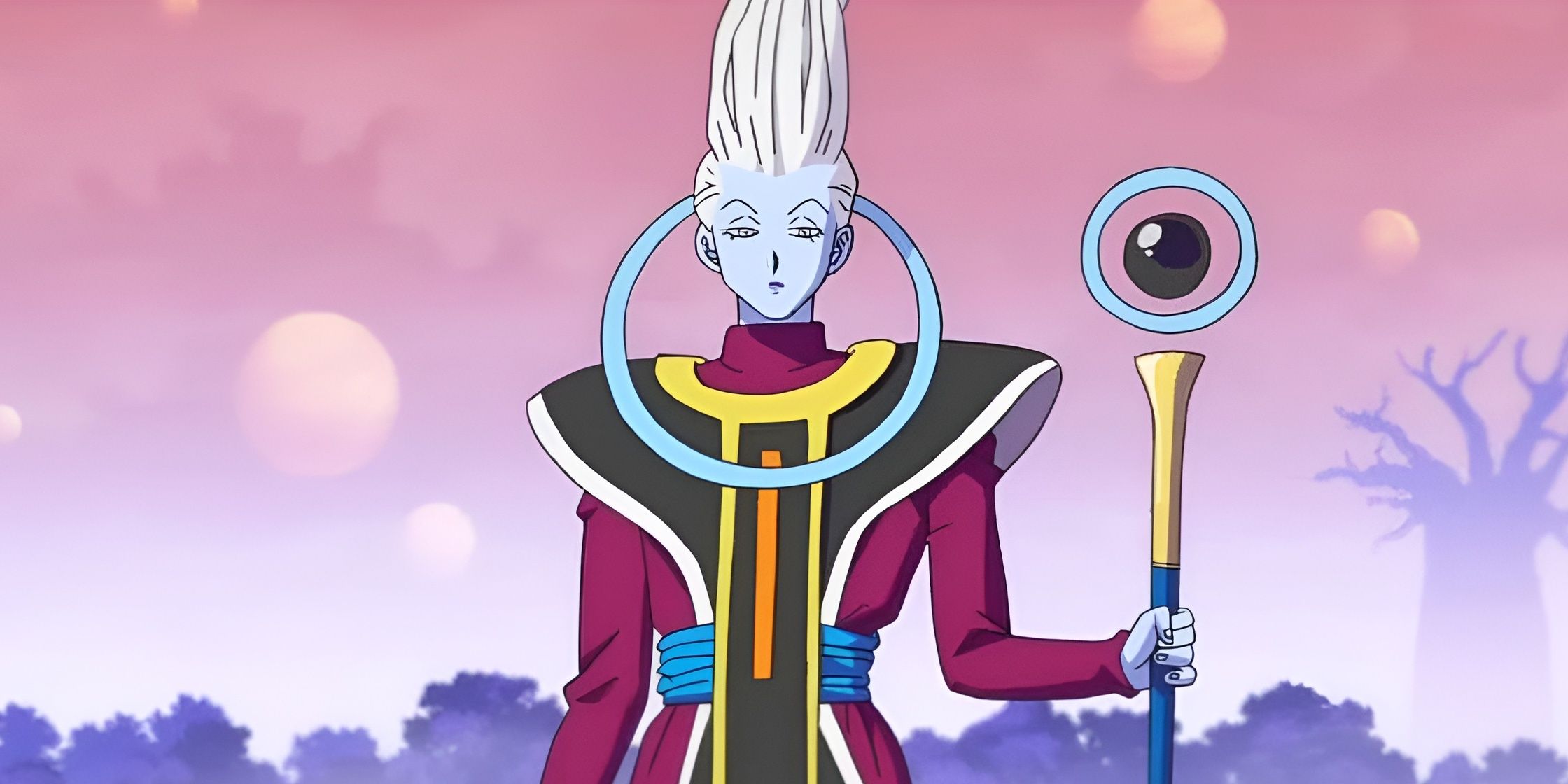 Whis frequently uses his staff for things other than fighting, like bringing people back to life, teleporting, and sensing a planet’s energy. But he’s certainly capable in battle when he needs to be. Even without his staff, Whis is powerful enough that both the Z fighters and Beerus greatly respect him.
