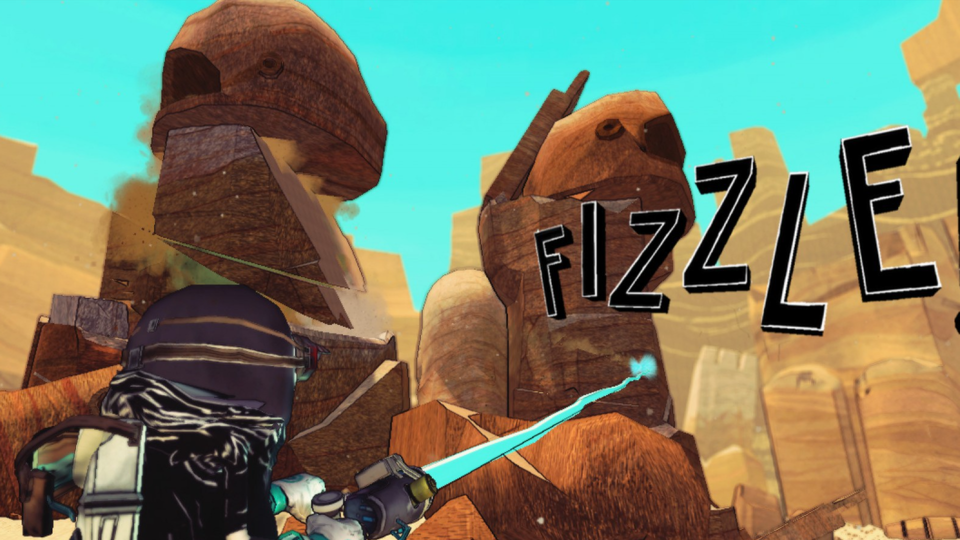 The core idea of the game is that you play as Tiny, who uses cool gadgets to reshape the desert landscape. You can move large rocks with a grappling hook, cut them with a laser, and even attach rockets for a wild ride – like a makeshift flying sled! The game is really open-ended, letting you solve challenges in lots of different ways thanks to its realistic physics.