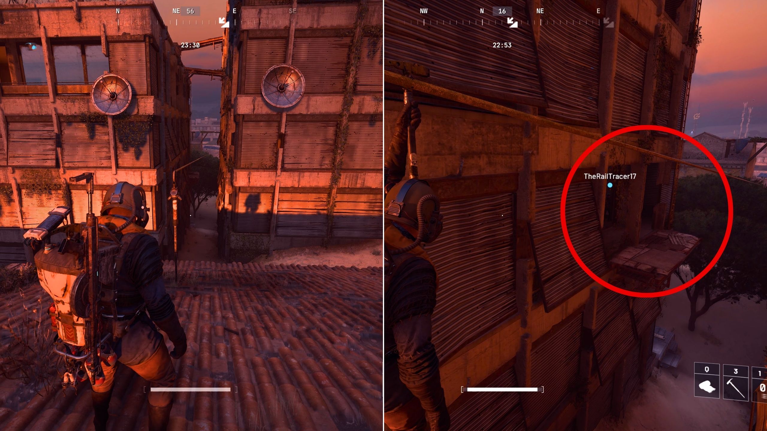 When you get to the spot shown on the map, you’ll see a zipline connecting the two buildings. While you’re riding the zipline, look for a metal platform that leads into one of the apartments. You’ll have to jump from the zipline to get inside.
