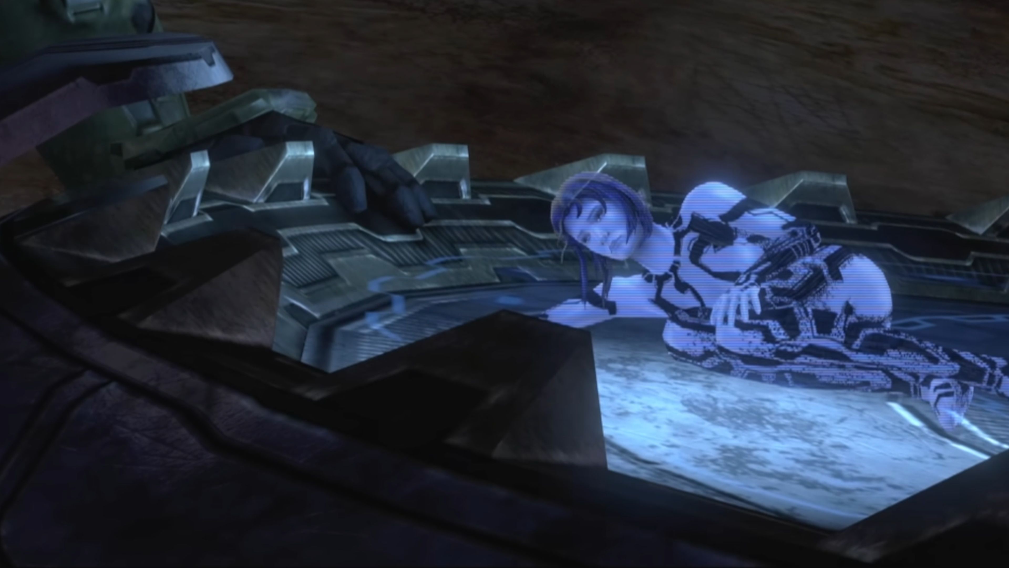 When Halo 3 starts, Cortana has been a prisoner of the Gravemind for a while. Being held captive has harmed her memory and made her unstable. Throughout the game, she appears as glitching holograms and fragmented messages, speaking in confusing ways that hint at both the terrible things she’s experienced and her inner strength.