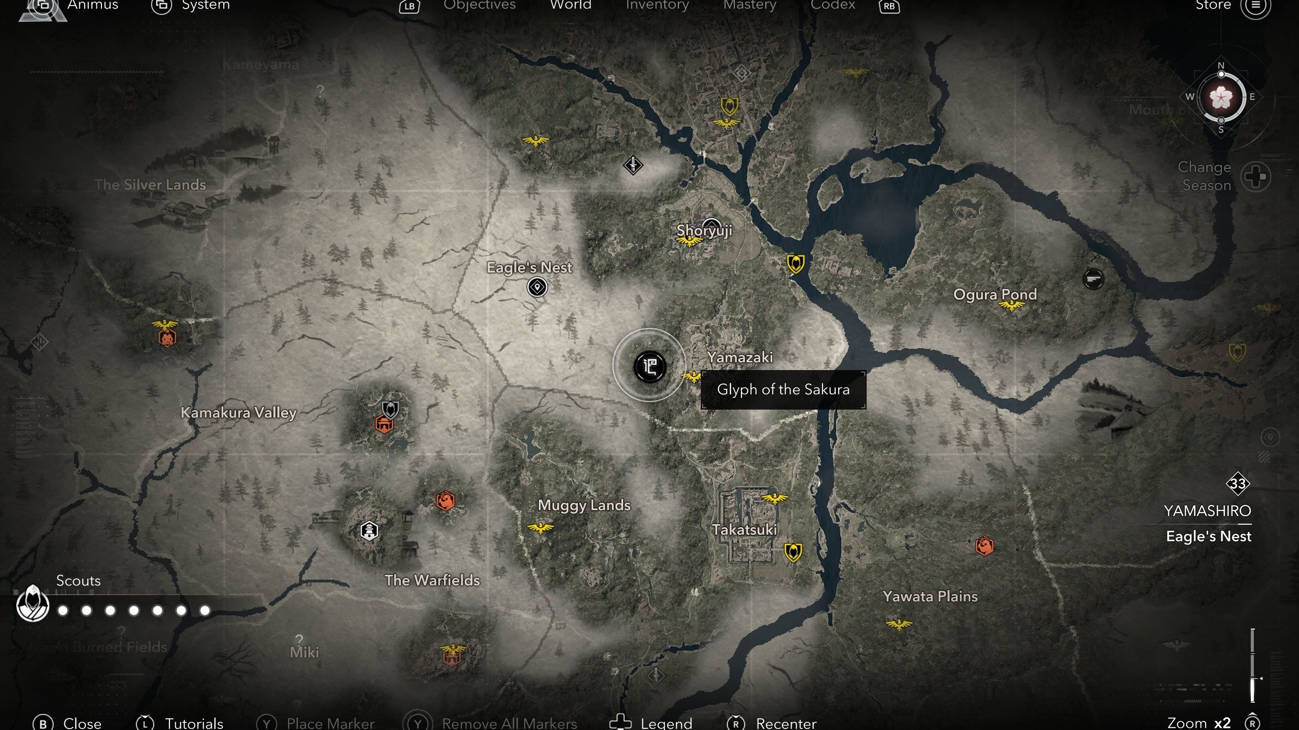 | Glyph of the Sakura | It is located on the forest trail west of Yamazaki town in the Eagle Nest area of the Yamashiro region. |