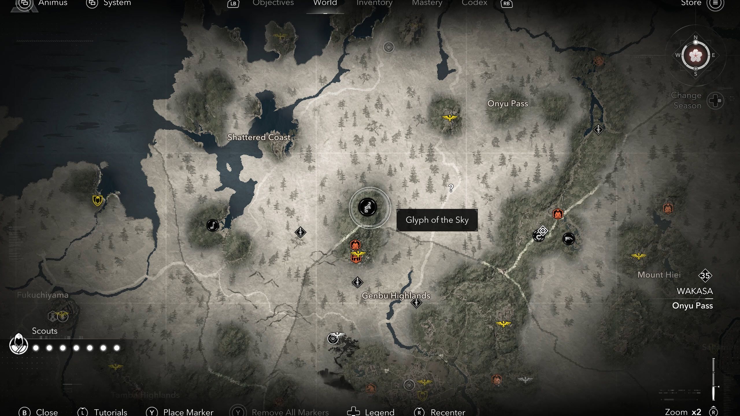 | Glyph of the Sky | It can be found atop the hill in the Onyu Pass area of the Wakasa region, north of Kuramadera Pagoda. |