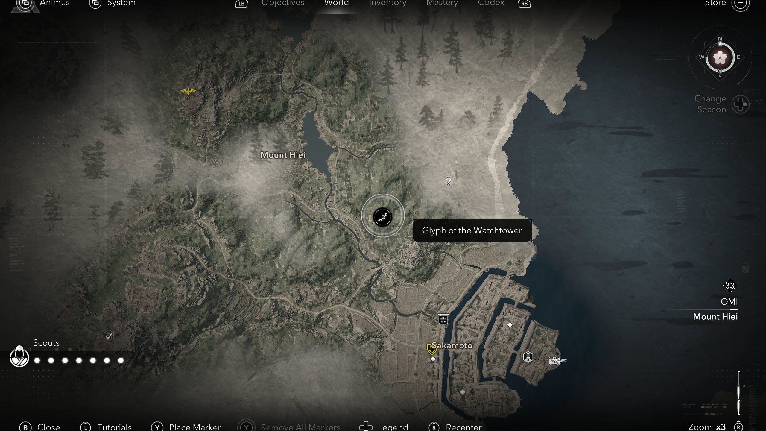| Glyph of the Watchtower | It is located in a partially deforested area in the Mouth Hei area of the Omi region, northwest of Sakamoto town. |