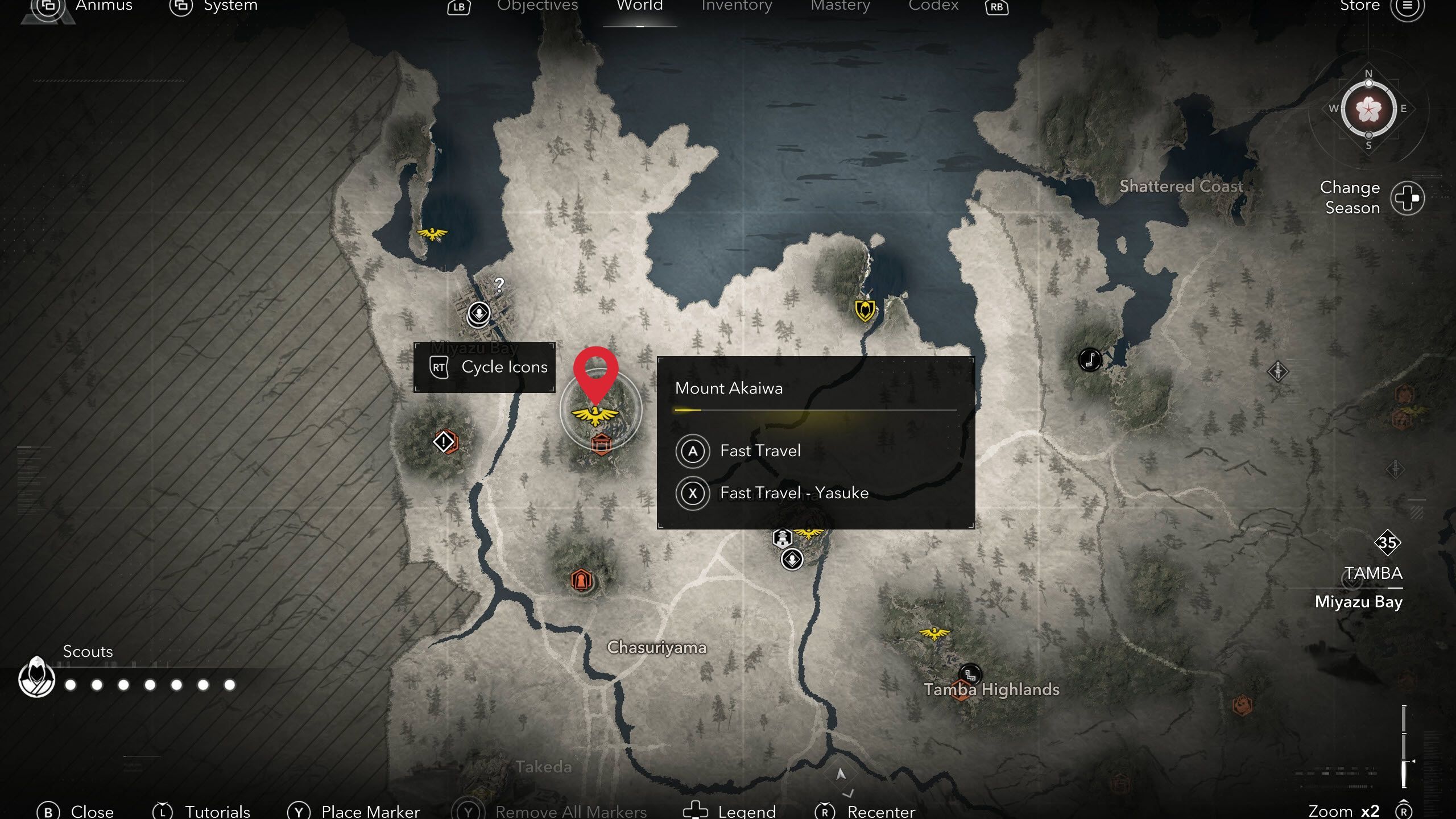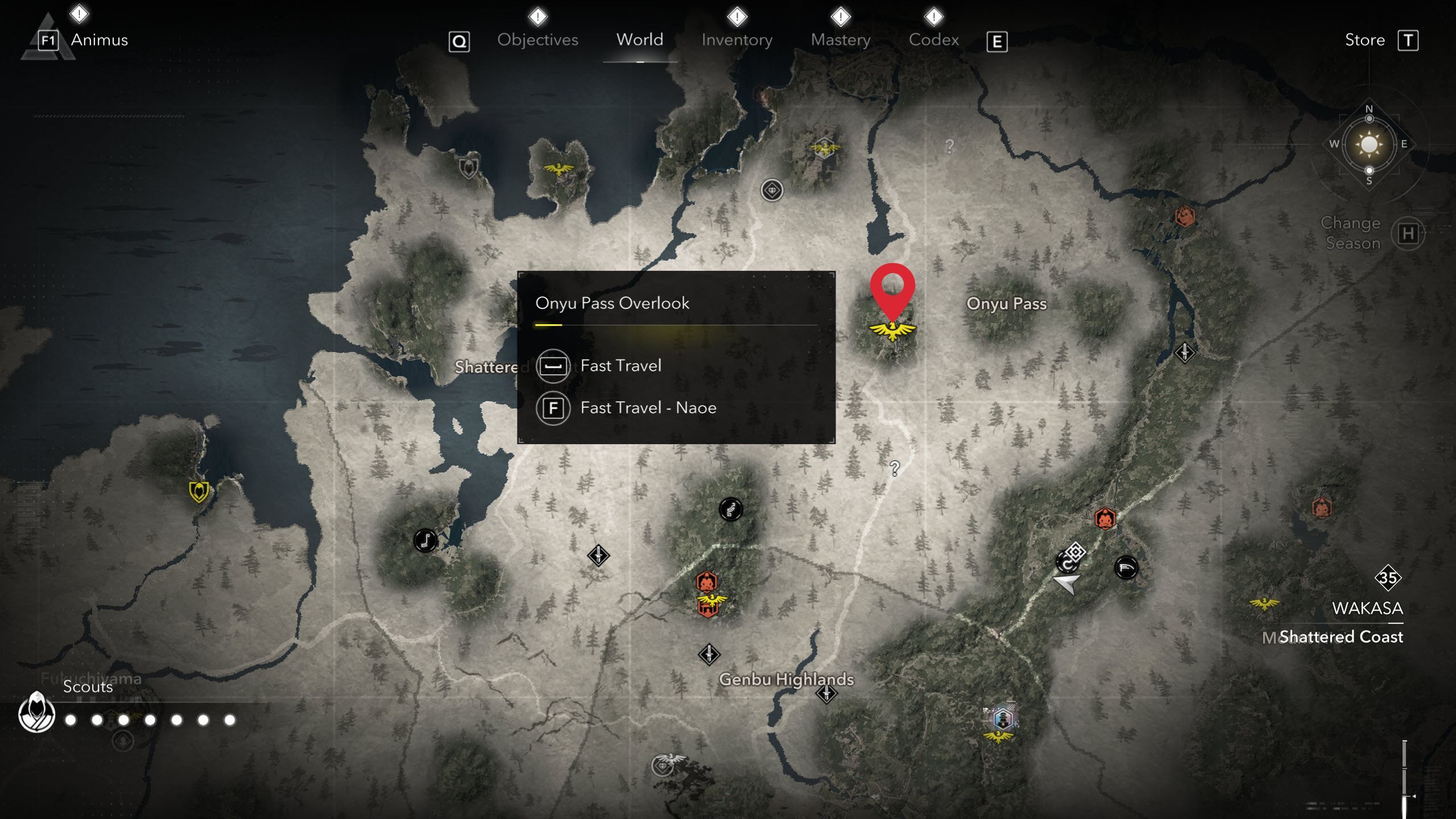 After that, players should travel to the Myoken Shrine fast travel point. It’s northeast of Yuasa village in the Sazae Oni Shores area of the Kii region.