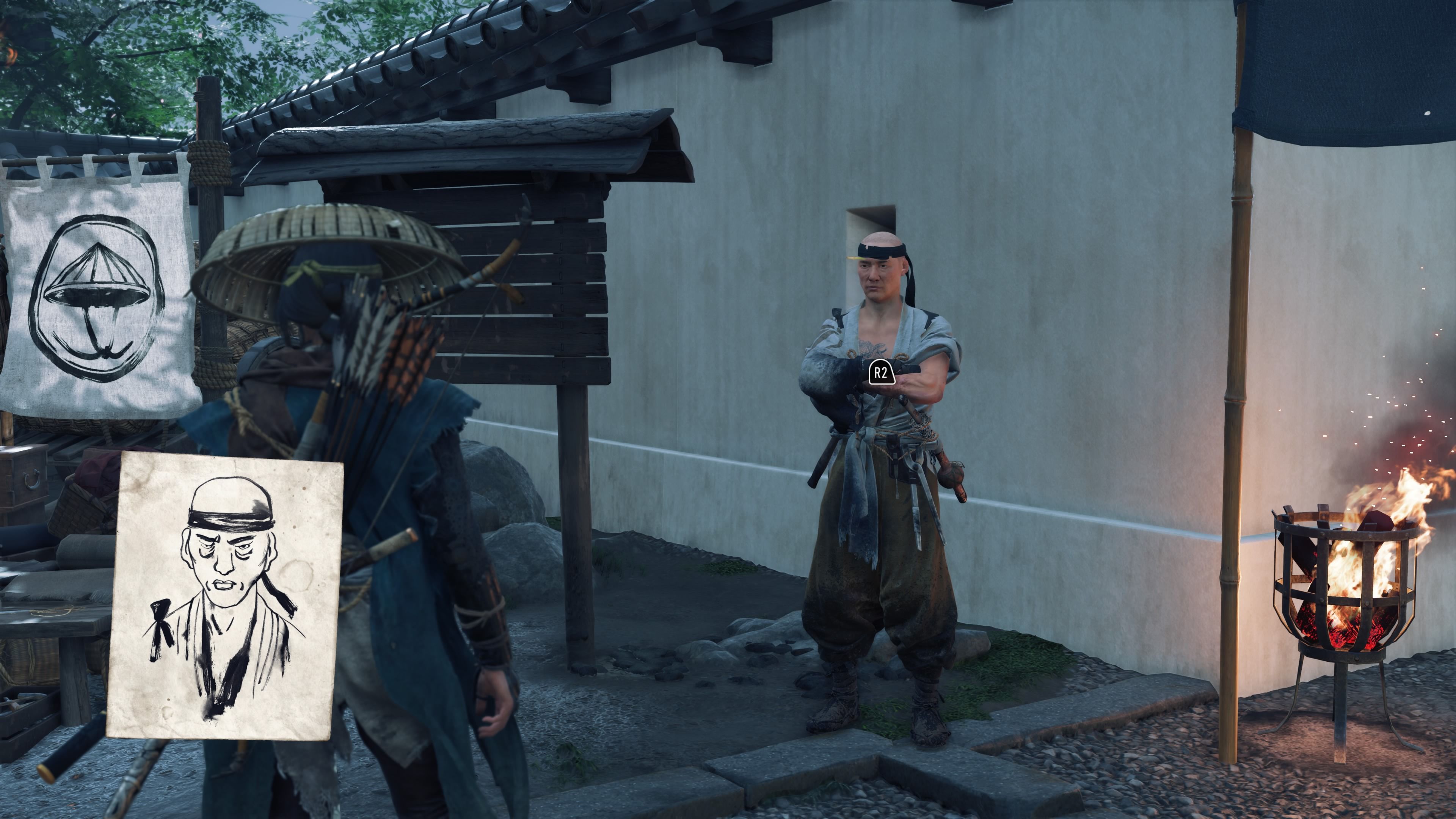 From Oshima Coast, head southeast to Esan Inlet and you’ll find Kasuga Village. This location is a Yotei Six Camp. Defeat the enemies here, then challenge their leader to a duel, and you’ll complete the Shinpachi the Armor Thief bounty – you don’t even need the bounty poster to do it!