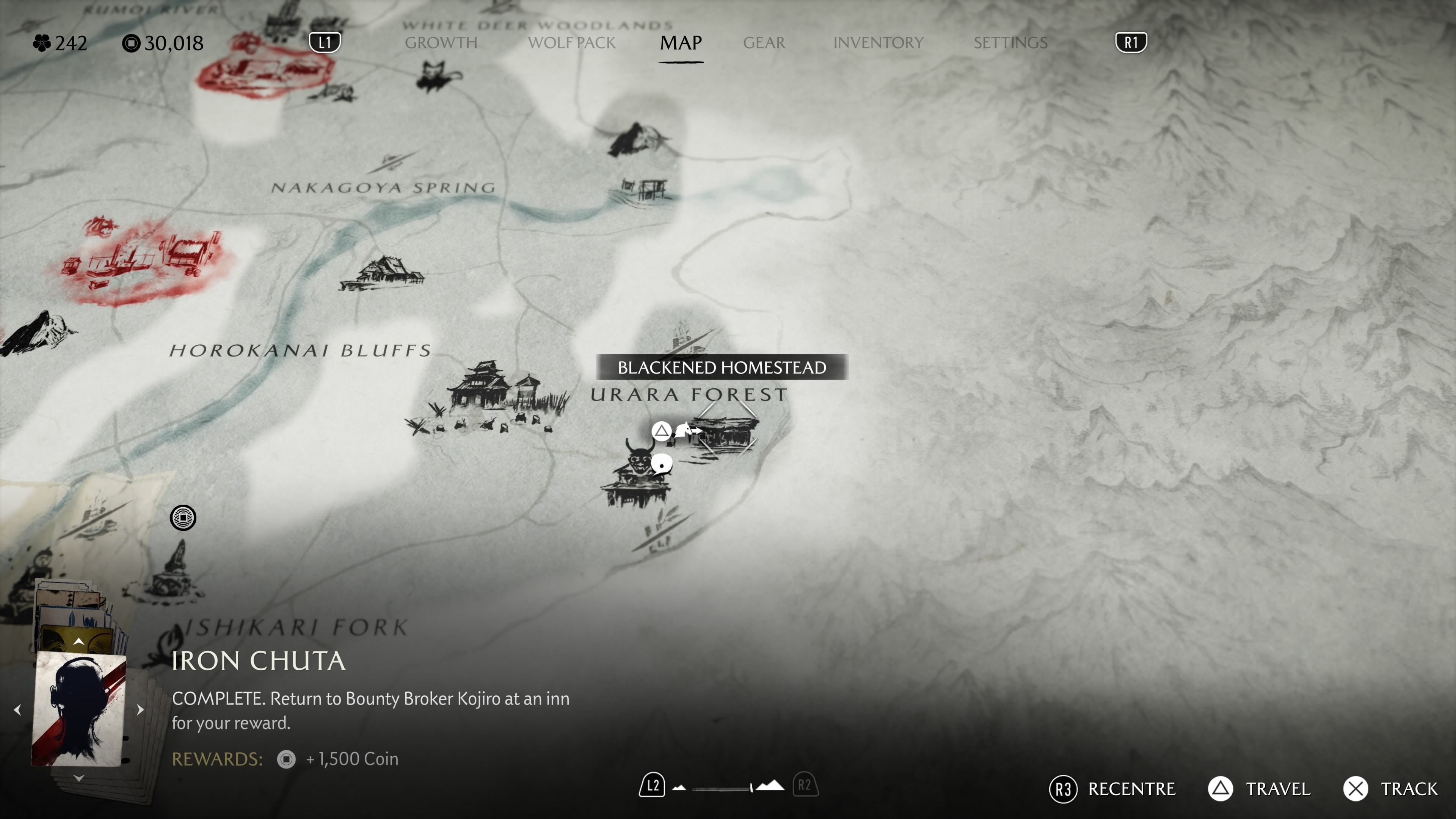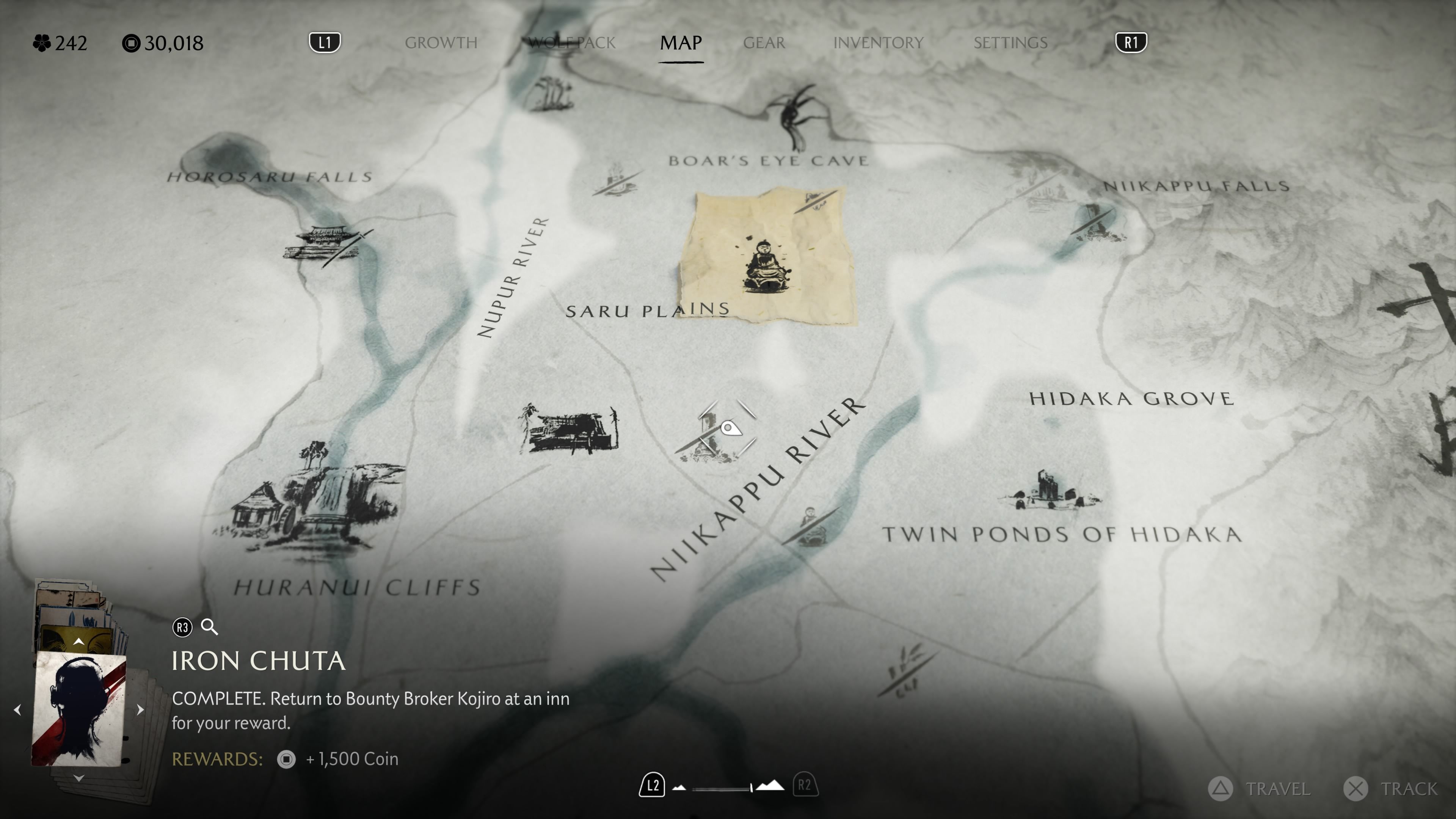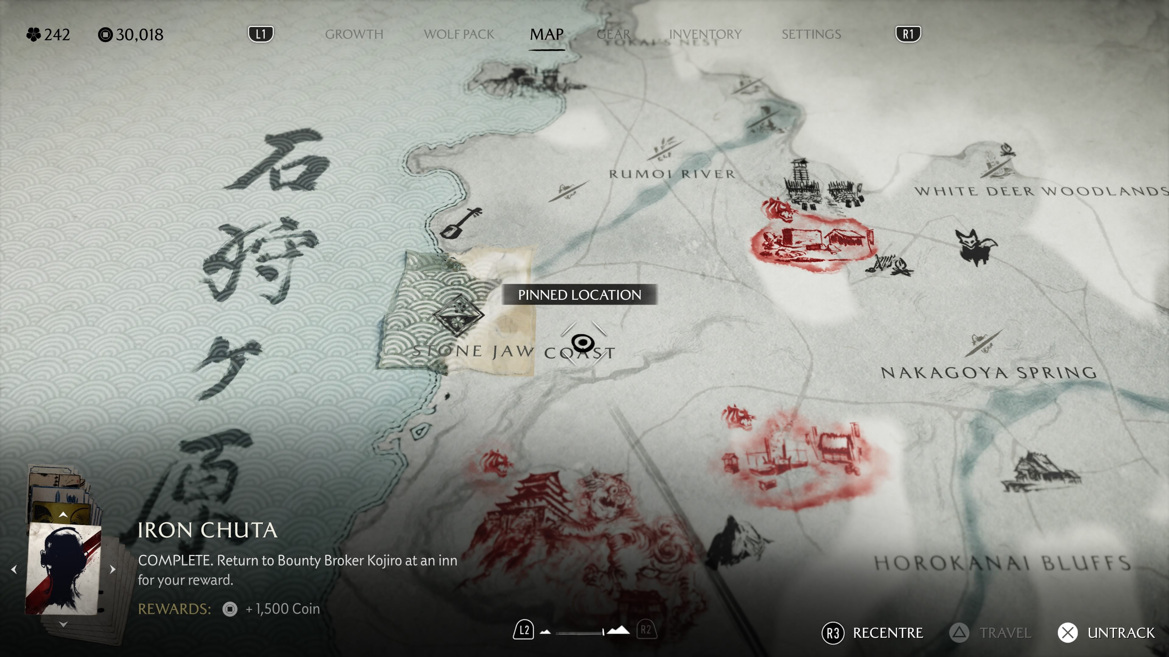 The Iron Chuta bounty becomes available after you finish the side quest “Desperate Remedy,” found at Moiwa Grotto east of the Huranui’s Rest Inn. Once the quest is complete, check the bounty board at the inn for the Iron Chuta wanted poster. You’ll find Iron Chuta by examining a corpse located north of the Niikappu River – look for it just north of the second ‘P’ in ‘Niikappu’ on your map.