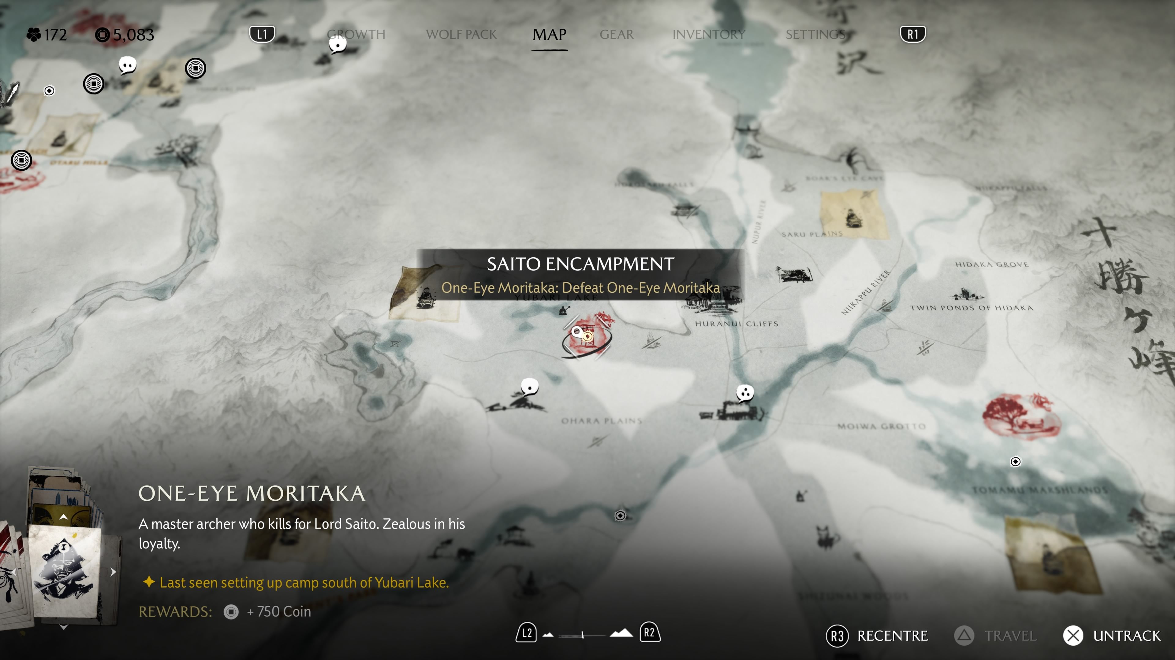 You can find a bounty for One-Eye Moritaka on the notice board at the Huranui’s Rest Inn. One-Eye Moritaka is located at the Saito Encampment, which is north of the Ohara Plains and just south of Yubari Lake. You can go there anytime, even if you haven’t accepted the bounty. To fight him, you’ll need to first defeat the enemies at the Yotei Six Camp.