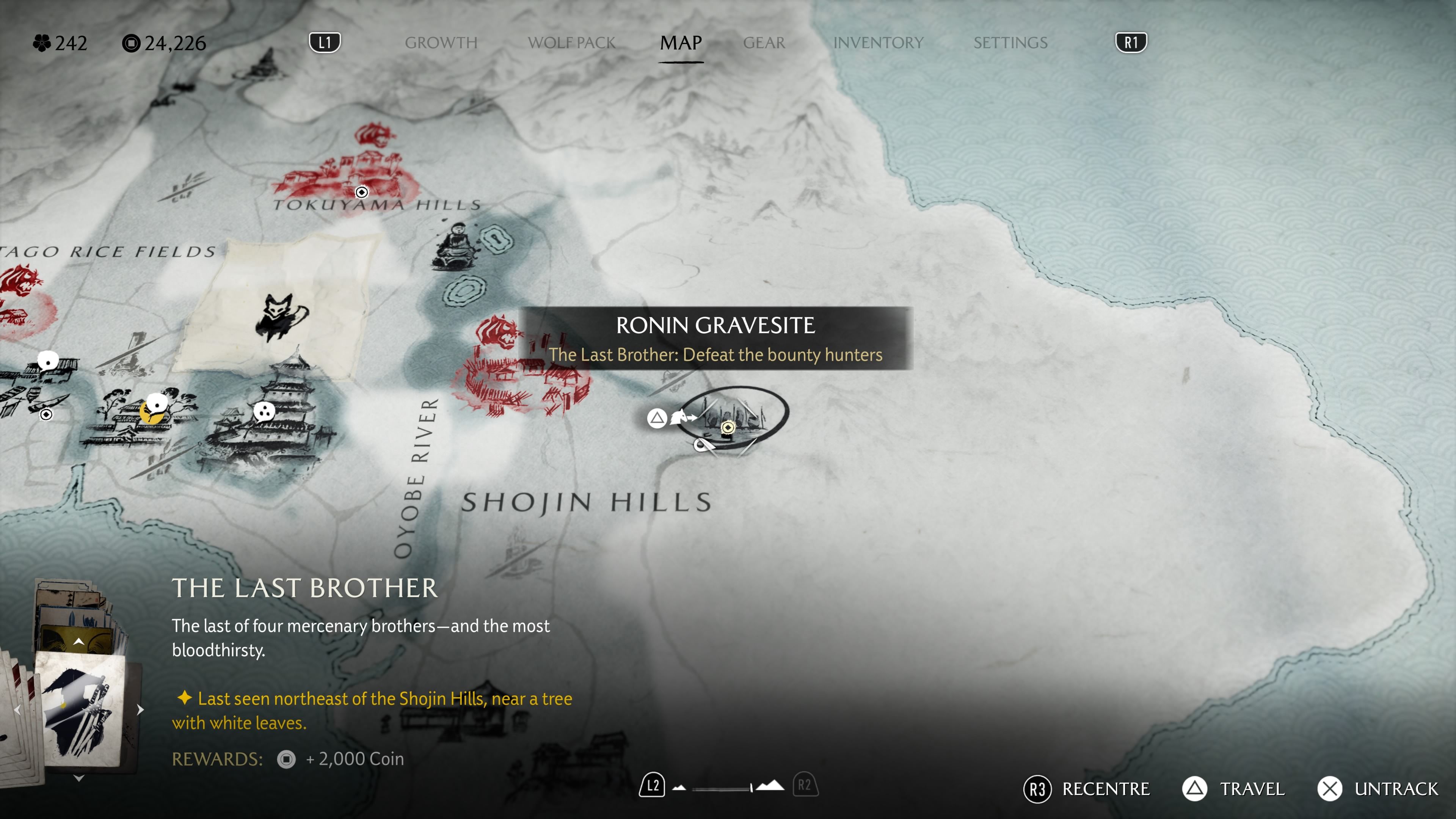 Okay, so I was looking for The Last Brother, and I finally found him at this place called the Ronin Gravesite. It’s just a little northeast of Shojin Hills, near a tree with white leaves – you can’t miss it. I had to take out a bunch of wandering ronin on the way, but once I got to the gravestones, I could talk to The Last Brother and challenge him to a duel. It was a tough fight, but definitely worth it!
