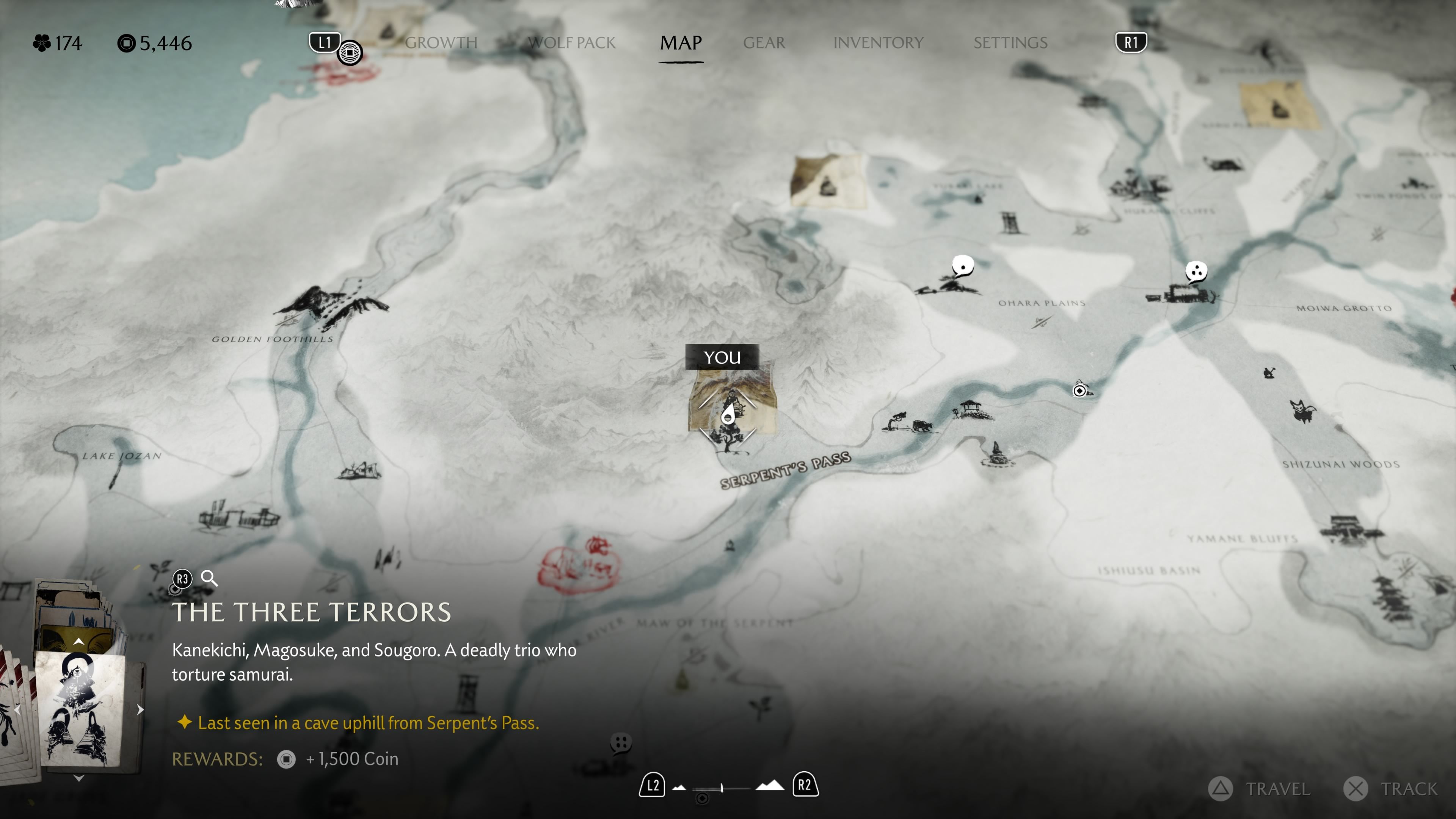 The Three Terrors is a bounty available at the Yotei’s Shadow Inn in the Yotei Grasslands. It sends players into a cave to defeat three dangerous creatures. You can find these targets, all located within The Twisted Tree, by heading north from Serpent’s Pass. Look for an opening in the rock wall to enter the cave, then descend to begin the hunt.