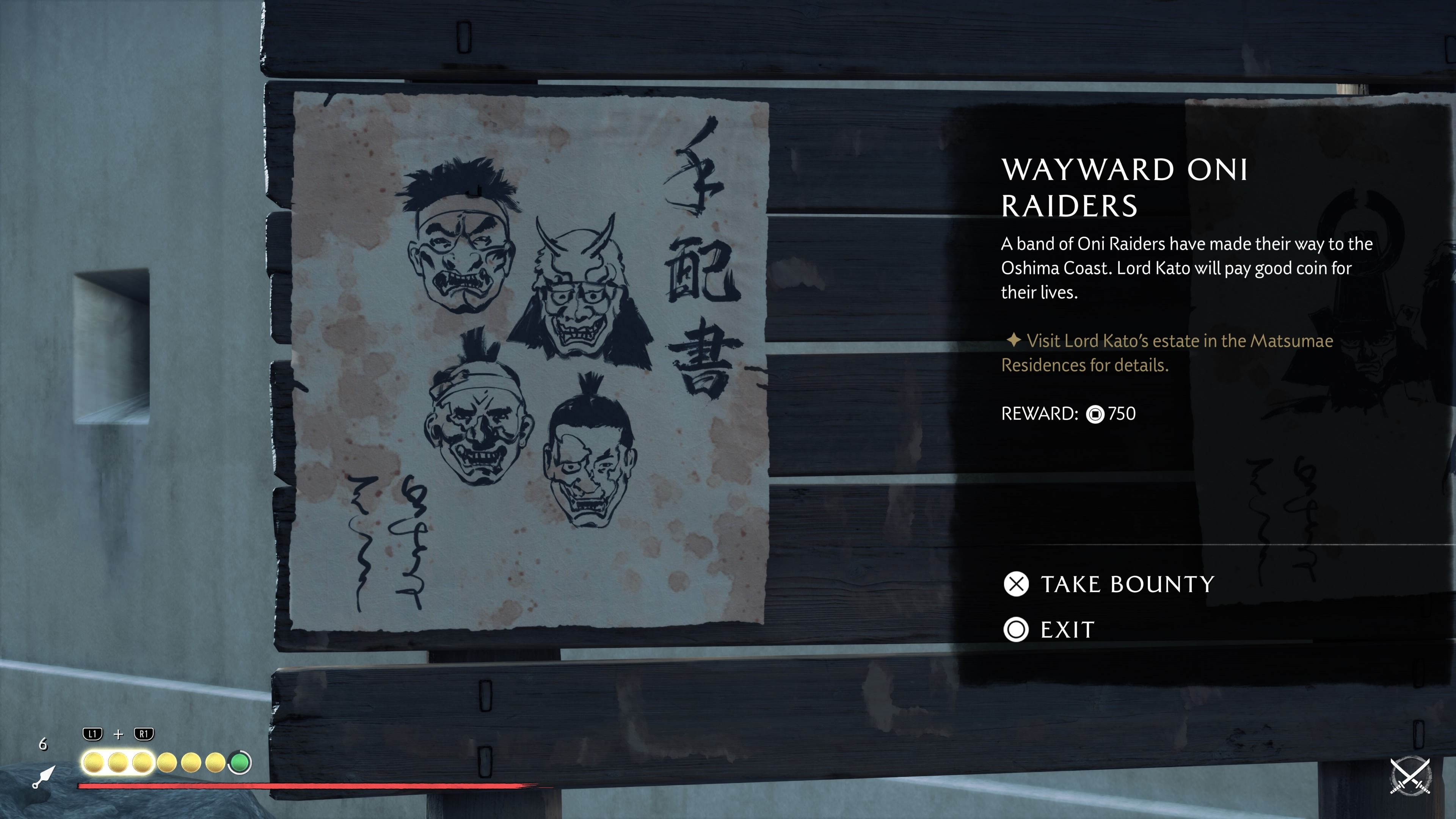 Once players complete three Oshima Coat bounties at Matsumae Castle, they can talk to Kojiro at the bounty board. He’ll explain that someone has put a bounty on *him*, and he’ll need the player’s help with a special mission. While it’s not a traditional bounty, completing it will still count towards the player’s overall progress.