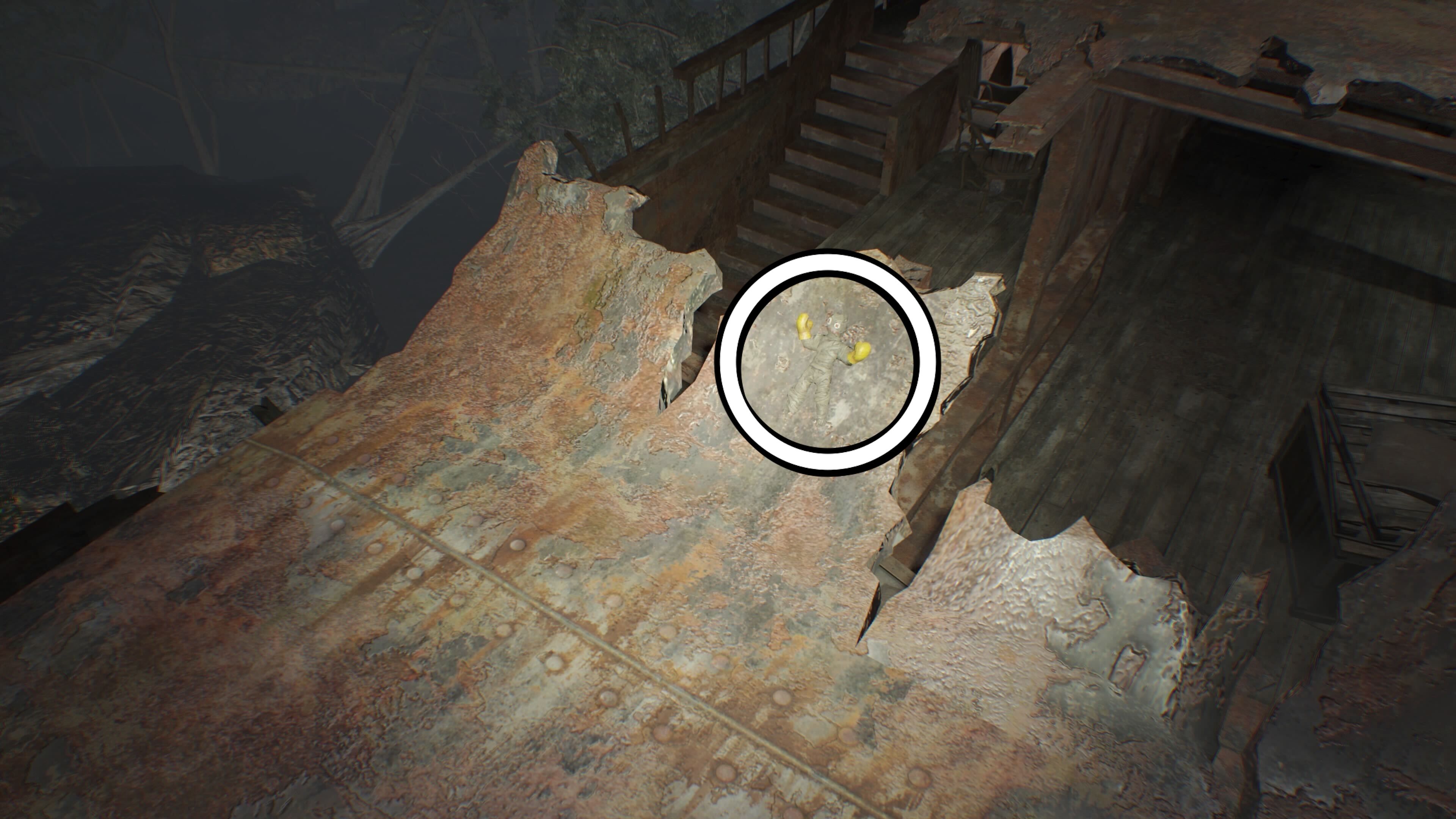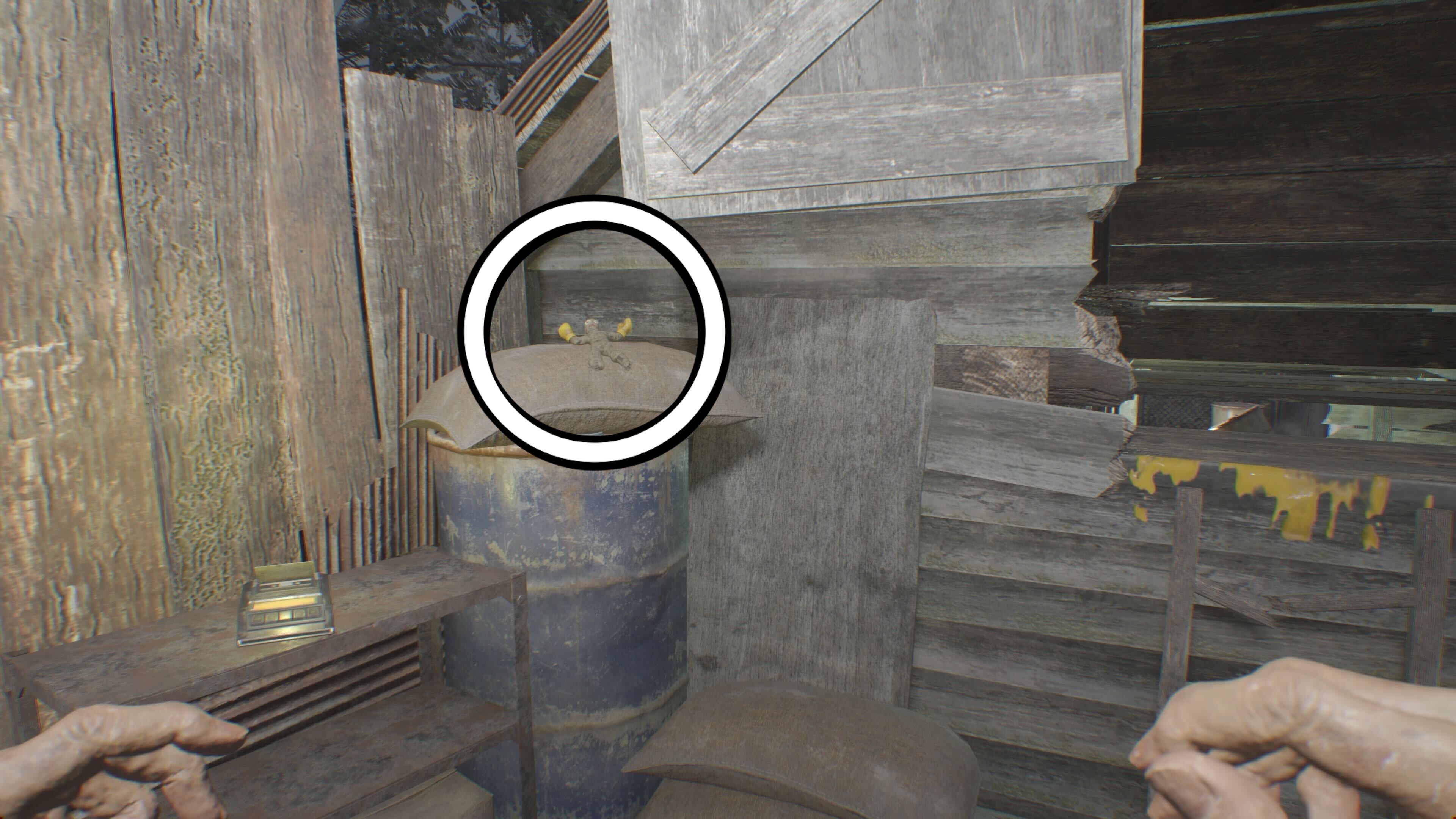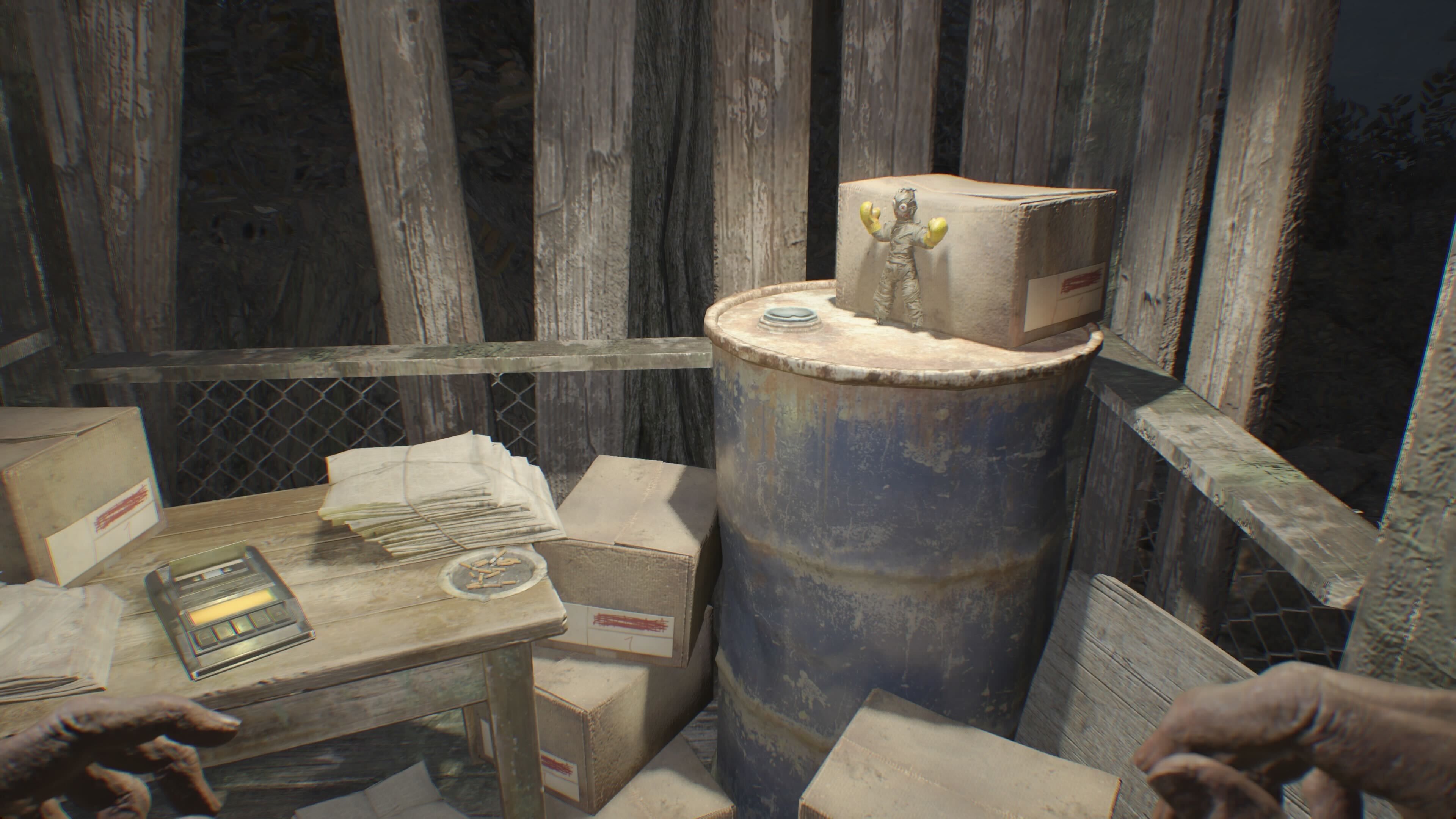 You’ll find the first collectible, an Effigy, on a yellow barrel to the left, right after you go through the first door you can break. Once you’ve defeated the two Molded enemies in that area, break down the door to claim the Boxer Effigy and some Chem Fluid, which you can use for crafting in RE7.