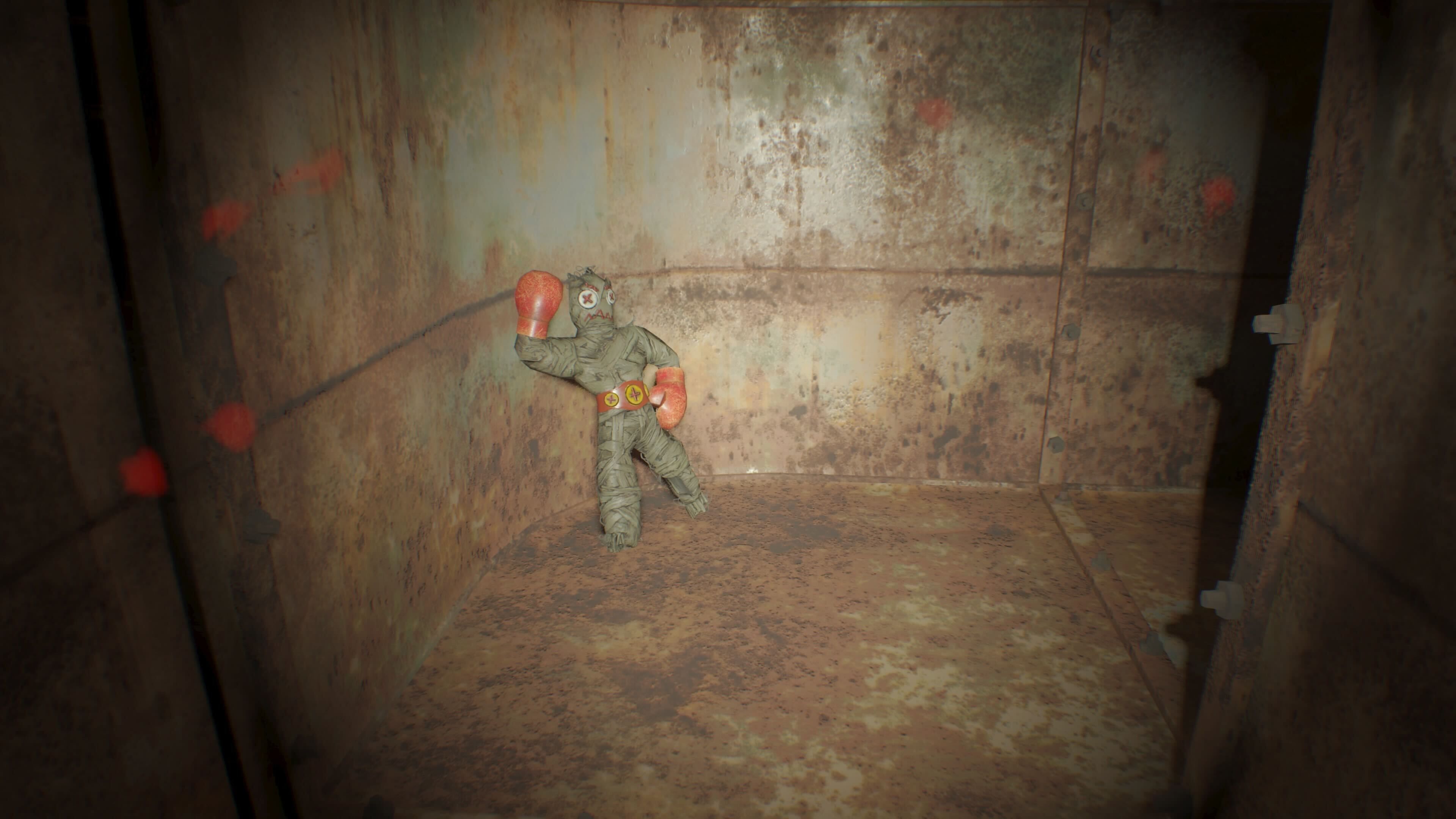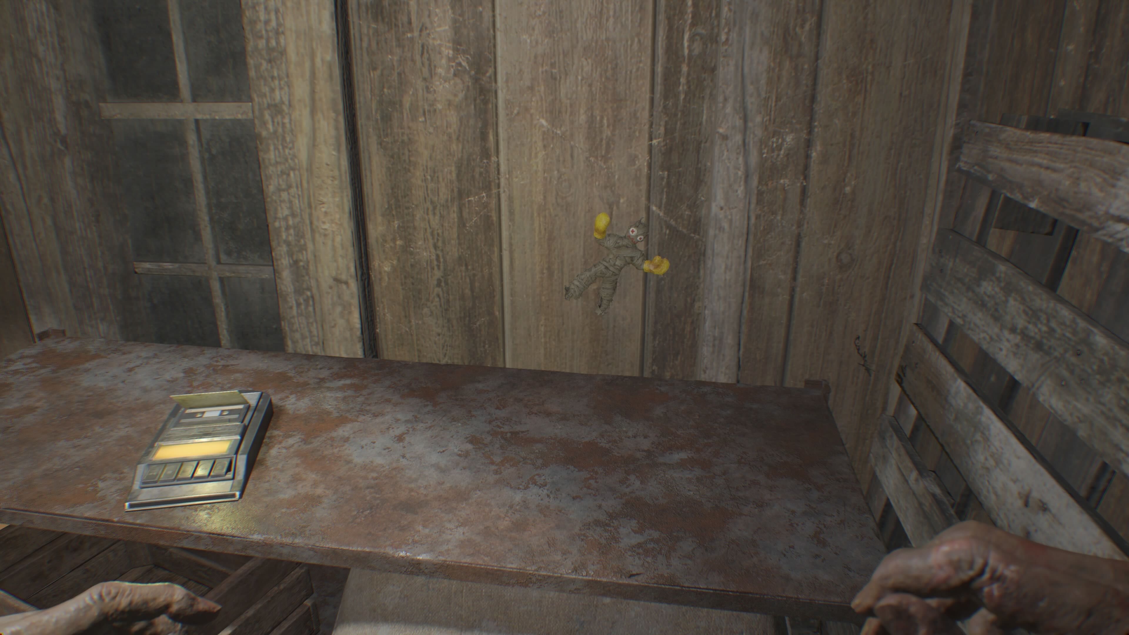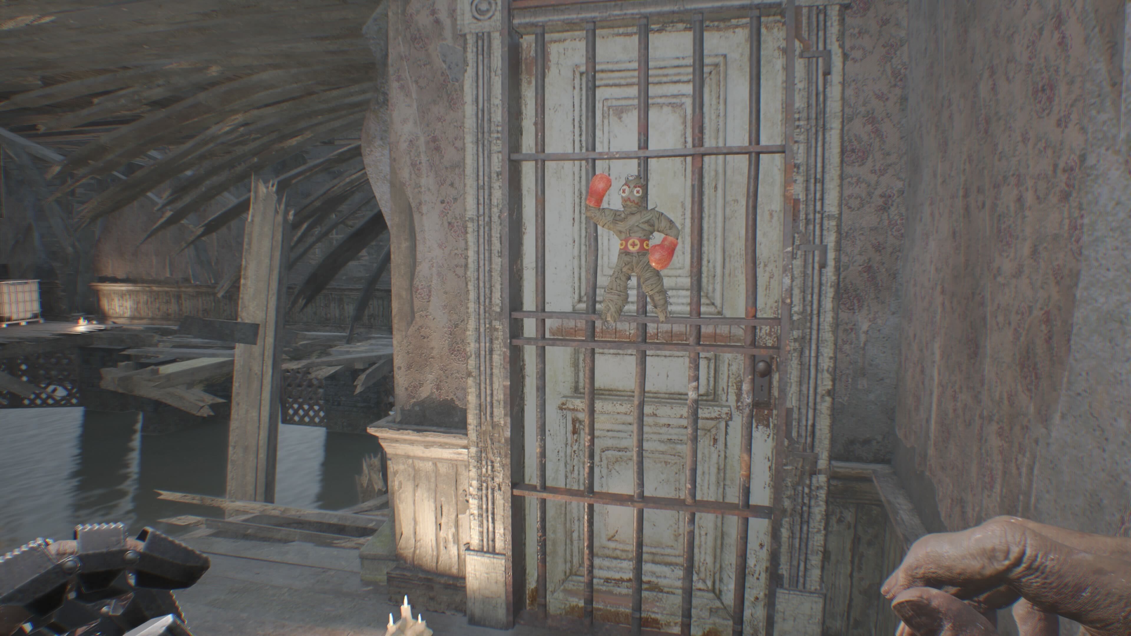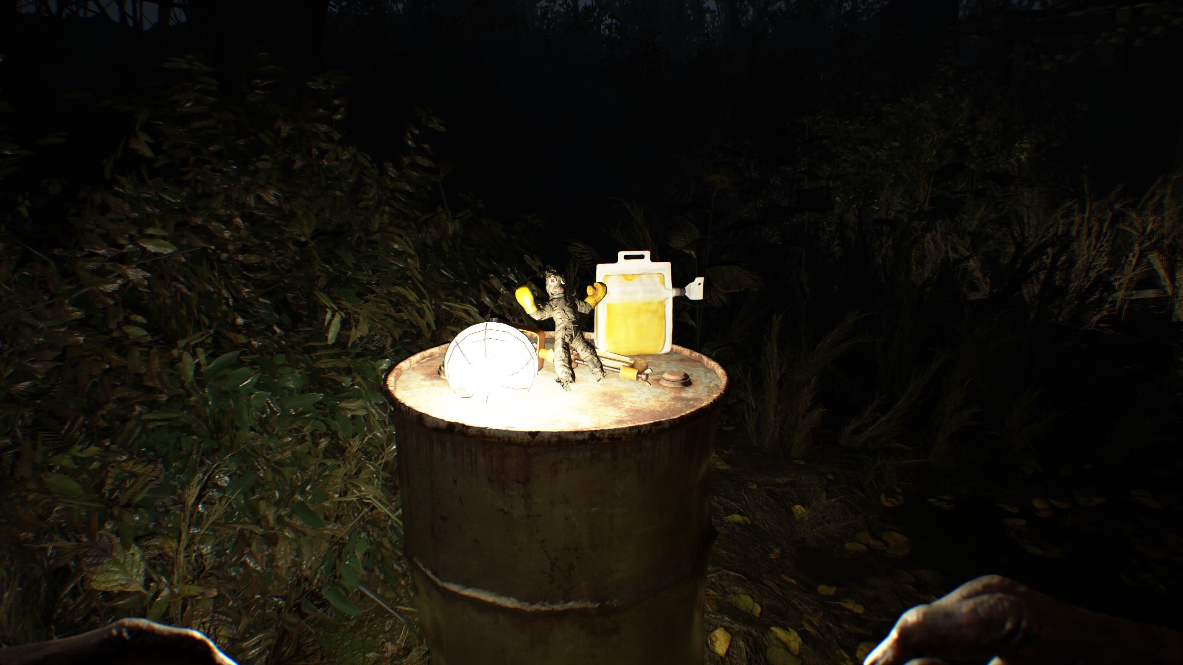 You’ll find the first collectible, an Effigy, on a yellow barrel to the left, right after you go through the first door you can break. Once you’ve defeated the two Molded enemies in that area, break down the door to claim the Boxer Effigy and some Chem Fluid, which you can use for crafting in RE7.