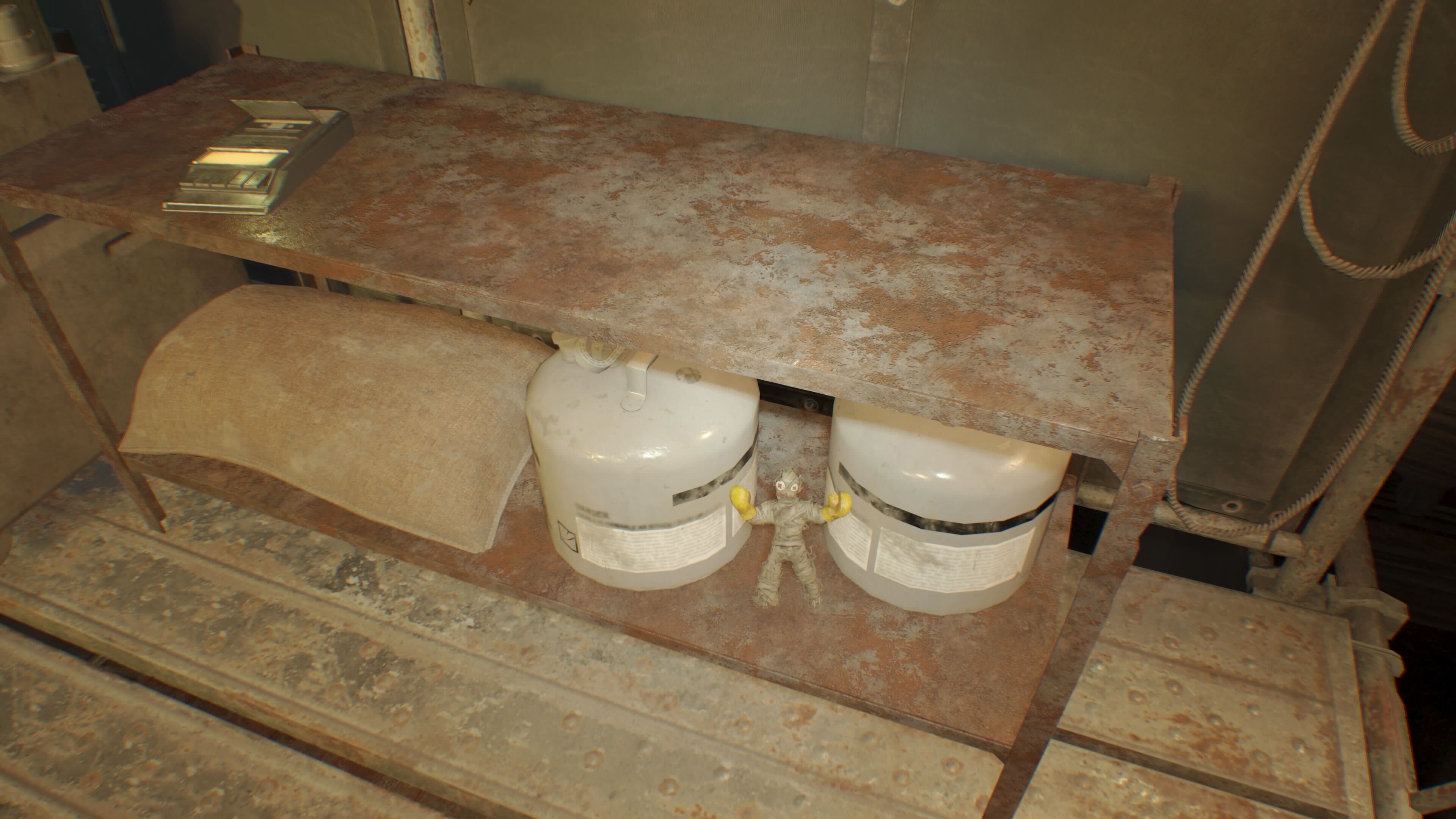 After leaving the air duct on the first floor of the Paddle Boat, you’ll enter a room with two Molded enemies and a door you can break. Defeat the Molded and go through the door, then climb the ladder on your left. Once you’re at the top, crouch and look to the right – you’ll find a Boxer Effigy resting against some propane tanks on the lower shelf.