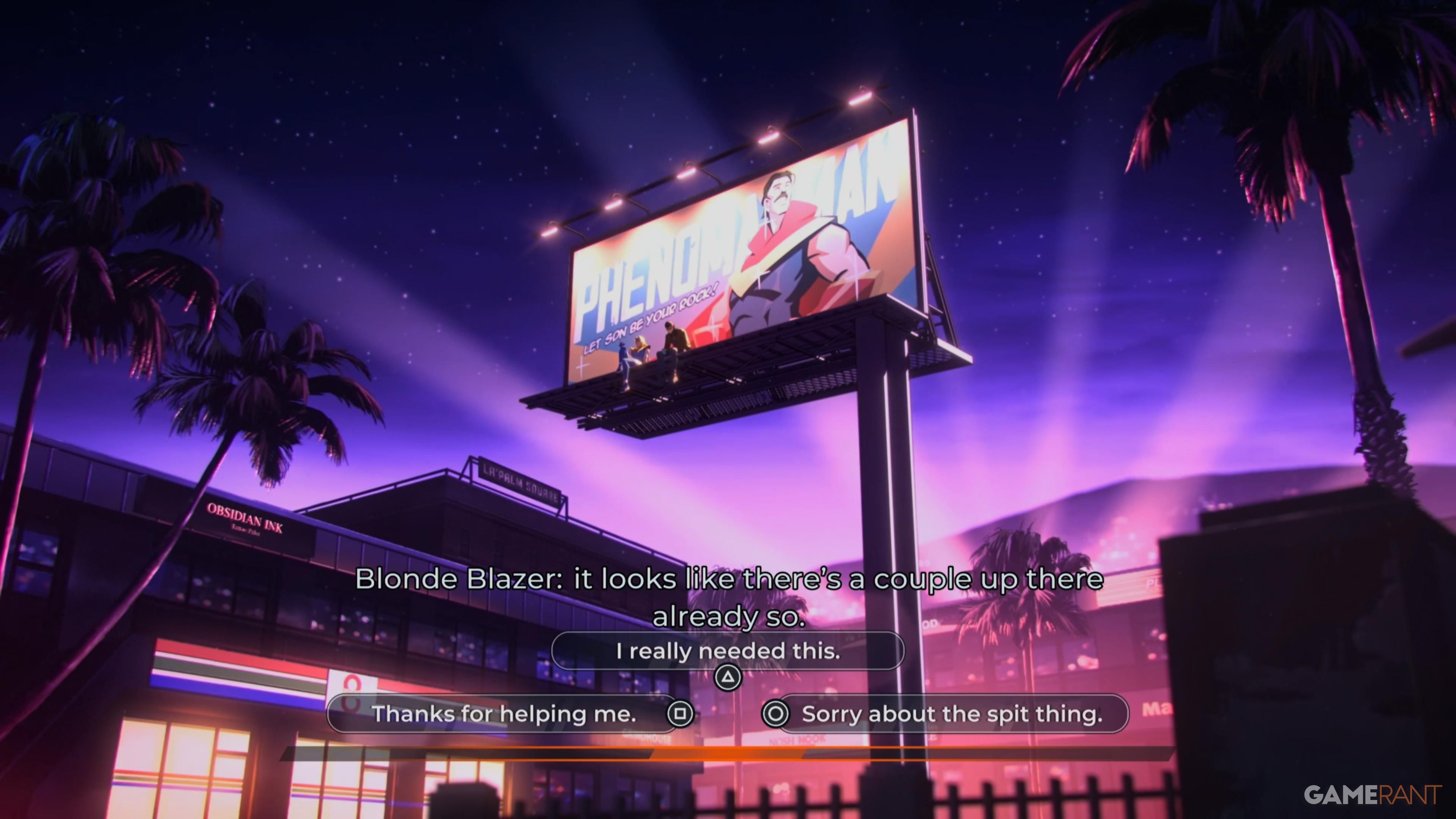 No matter what you decide, Blond Blazer will lead you to a billboard near the Hollywood sign. You’ll sit with her and start a new conversation, with several different things you can say – but most of your choices won’t affect the story.