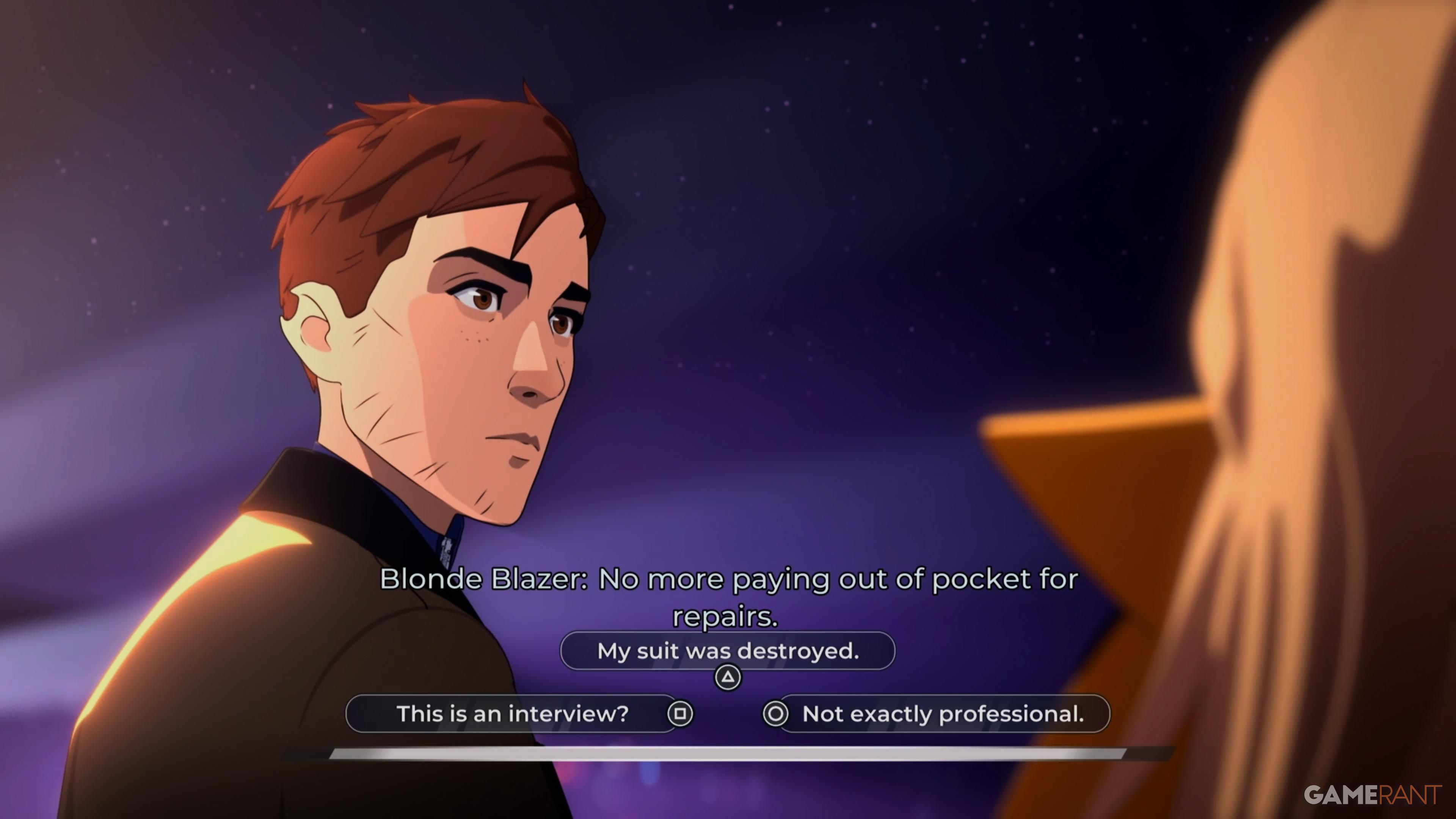 Feel free to pick any of these choices – none of them will affect the story. After that, you’ll watch the rest of the scene and then face a quick interview with reporters, where you’ll need to answer three questions.