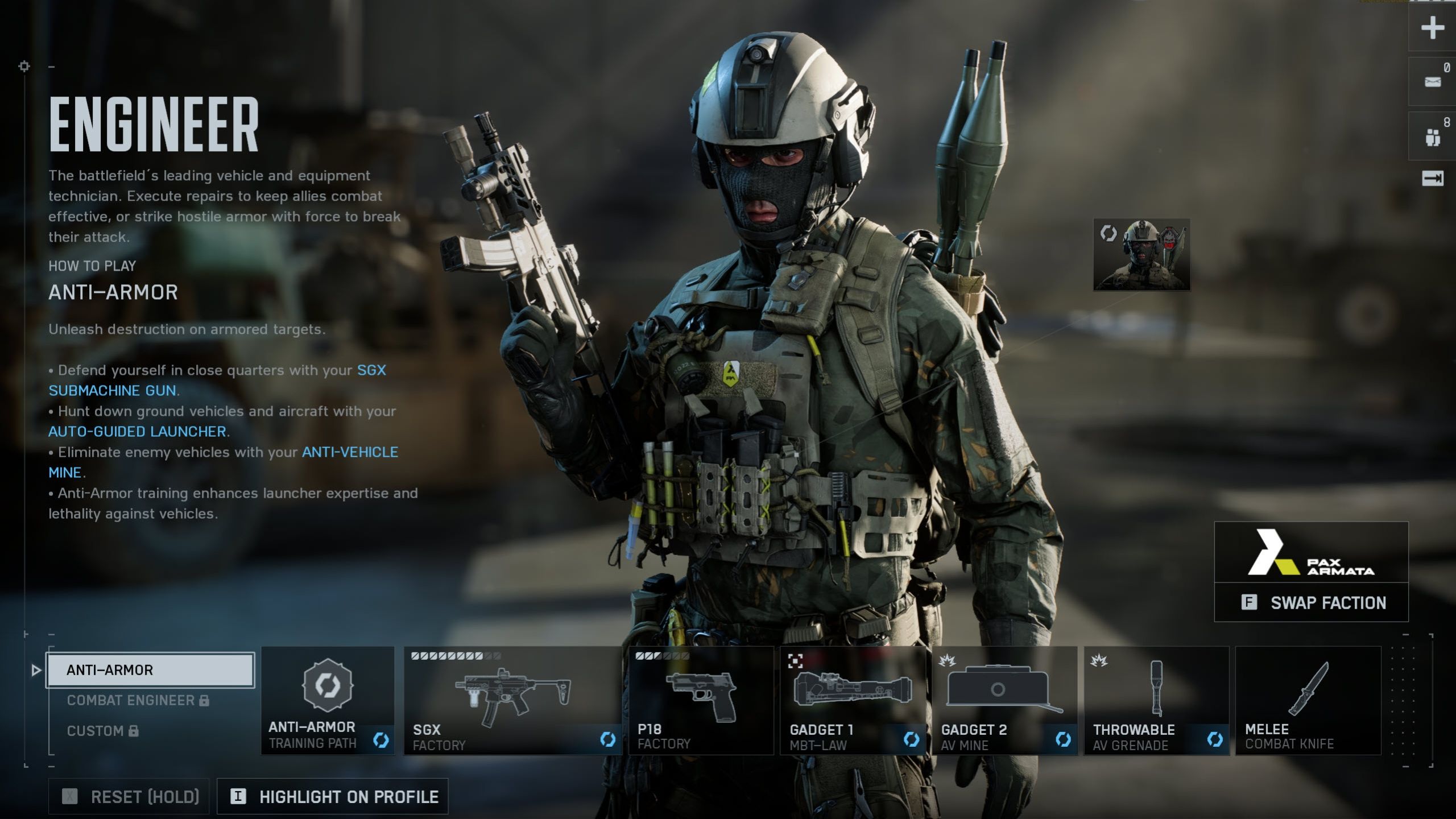 | Gadgets | Laser Designator | Binoculars that paint enemy vehicles or locations, which also help lock on targets for long-range launchers. |