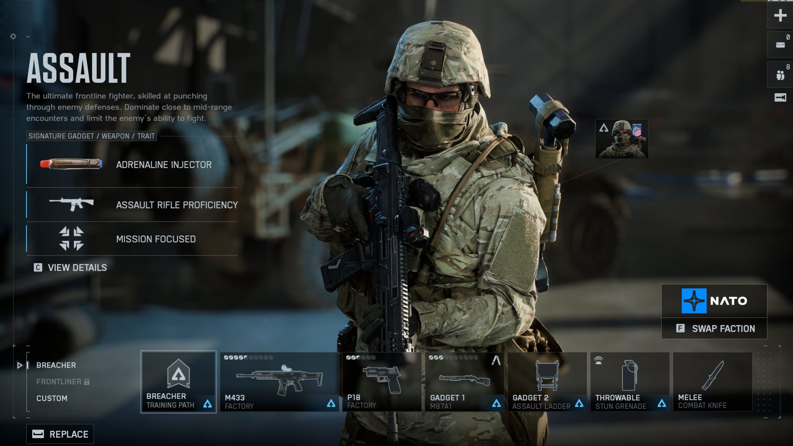 | Signature Trait | Mission Focused | Quicker progress for objectives, including arming and disarming explosives. Reduced cooldown from in-combat state to allow teammates to spawn on you quicker. |