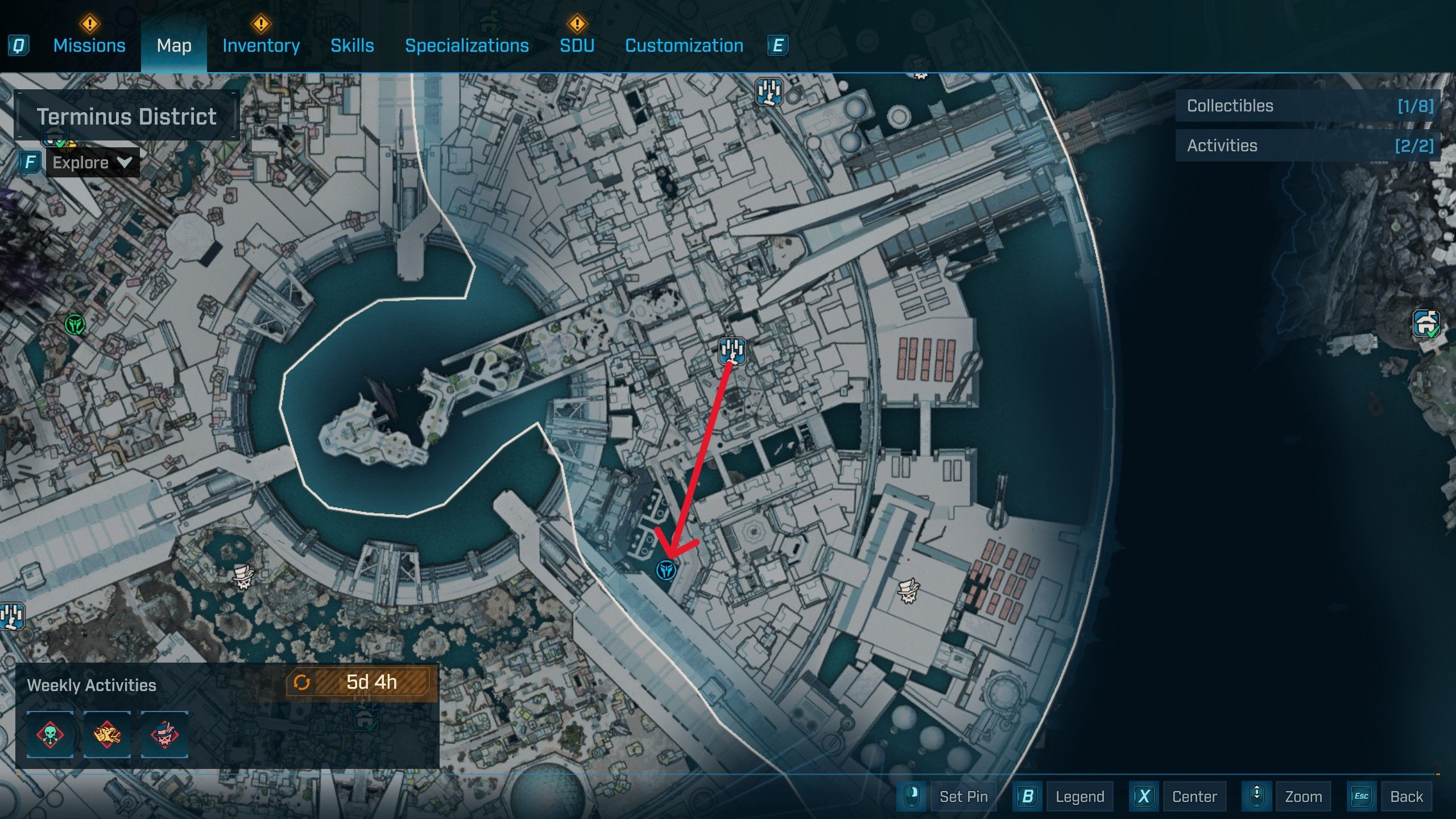 Travel to the Frantic Scrawl fast travel station in Dominion’s Terminus District, then head south towards the Dunk POI to find the Evocarium. Right next to the Evocarium, you’ll find an orb. From there, go east and climb a container to reach the next orb. Finally, jump off the scaffolding, use a double jump and glide to the left path along the southwest wall to collect the last orb.