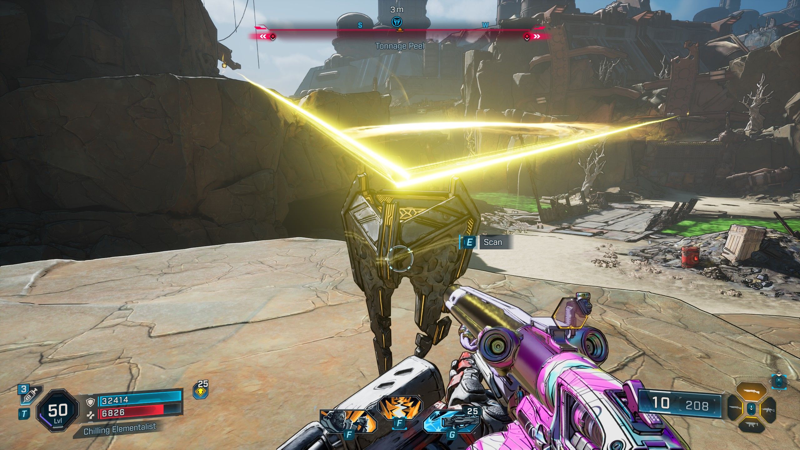 To begin the Tonnage Peel Evocarium, head south and climb the ledge to find the first orb. The second orb is located southwest, near the pool of green liquid, and the third is in the northwest, on top of some scrap metal.