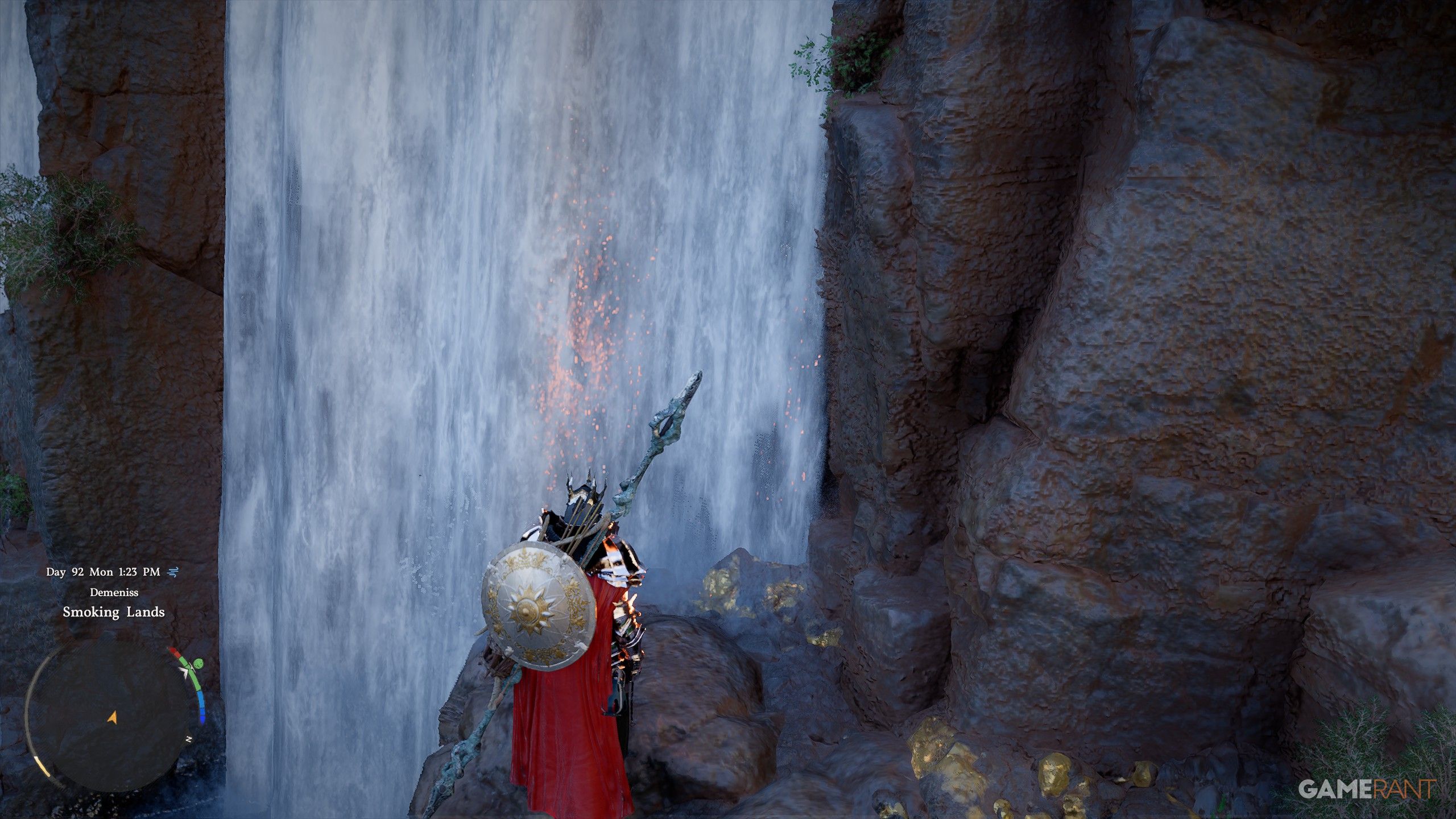 - Head north of the Deadfire Mountain to find a waterfall in the Smoking Lands of Demeniss.
