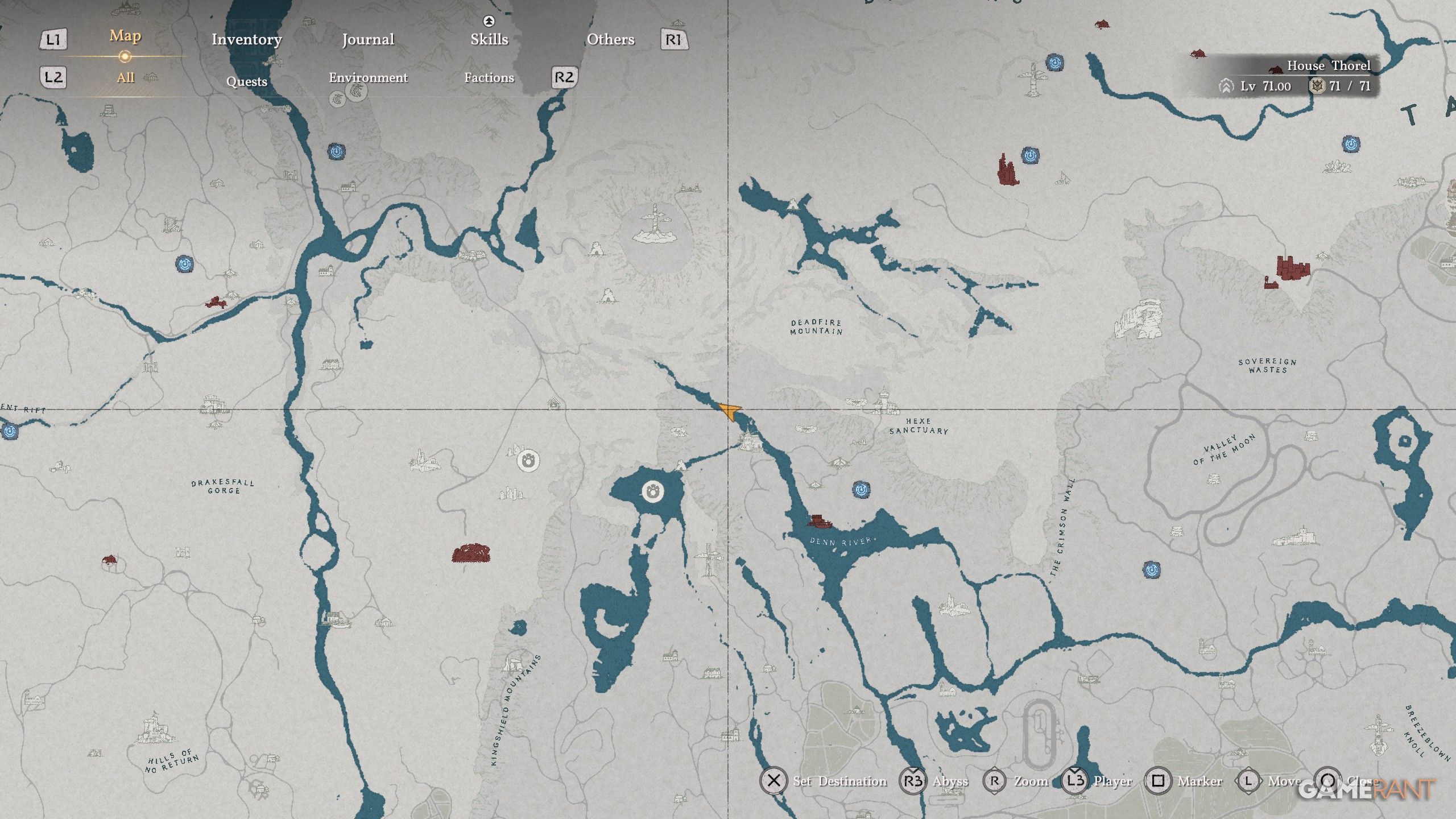 - Head to the Denn River and face south, which is far north of the “M” in “Demeniss” (marked on the map above).