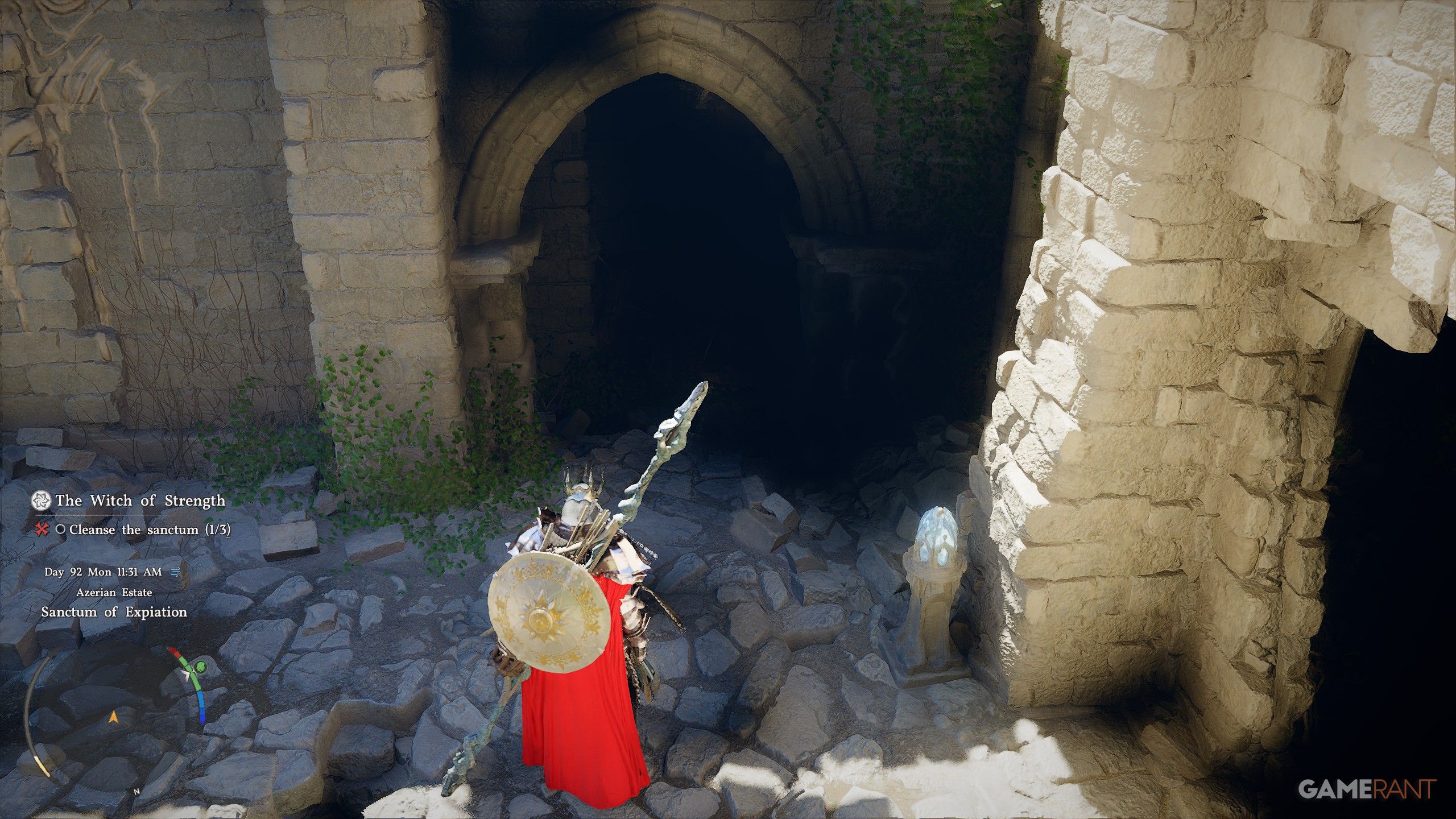 - When facing the south ruins, you’ll find an open door with vines covering it.