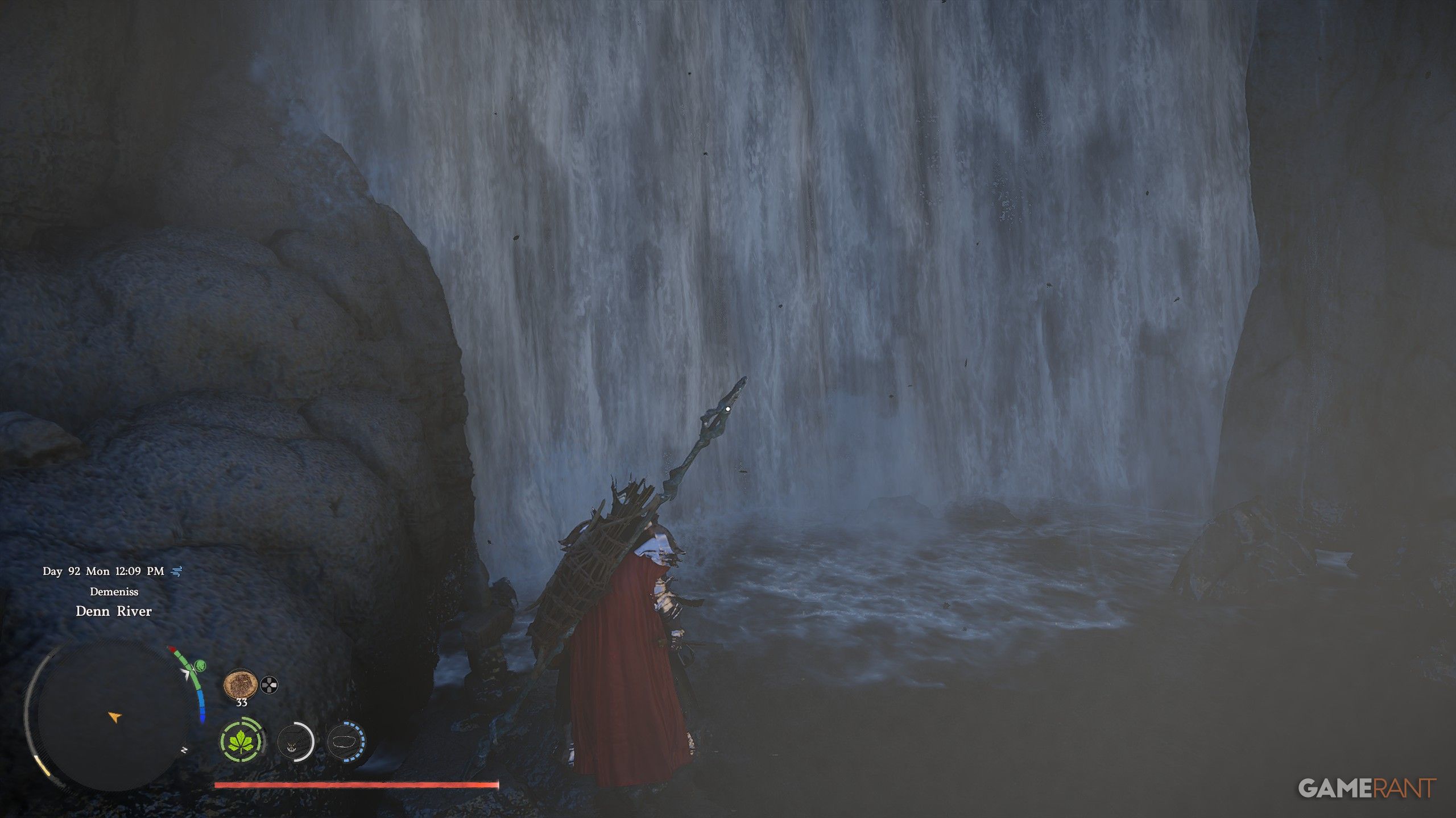 - Head north of Demeniss to reach the Denn River and follow north upstream to find a waterfall.