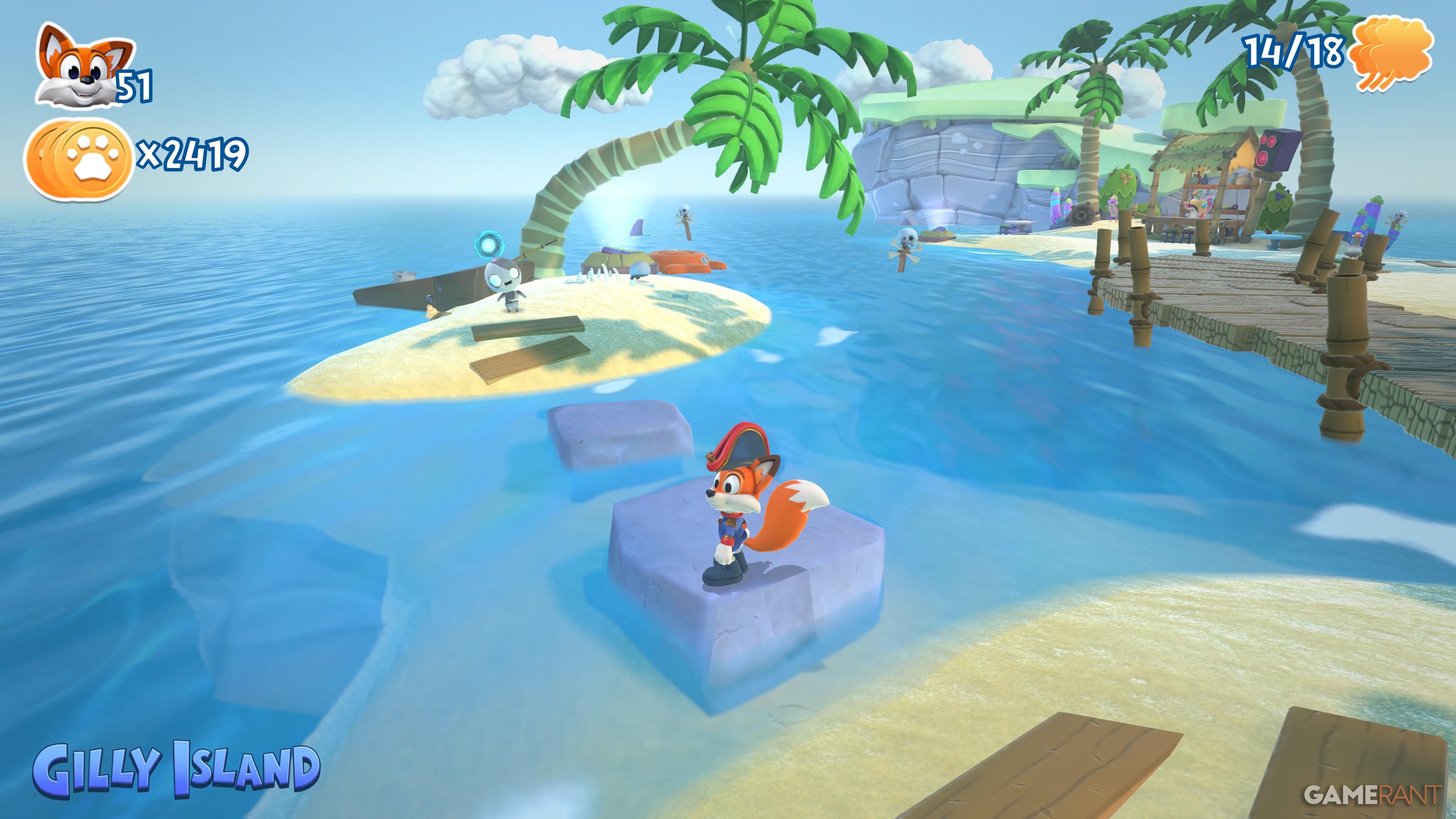 Gilly Island is the fourth world you’ll explore in New Super Lucky’s Tale. It has three levels with 18 collectibles hidden throughout. You can also find six sliding block puzzles in the central area, and each puzzle will give you a page when solved. This guide shows you where to find everything.