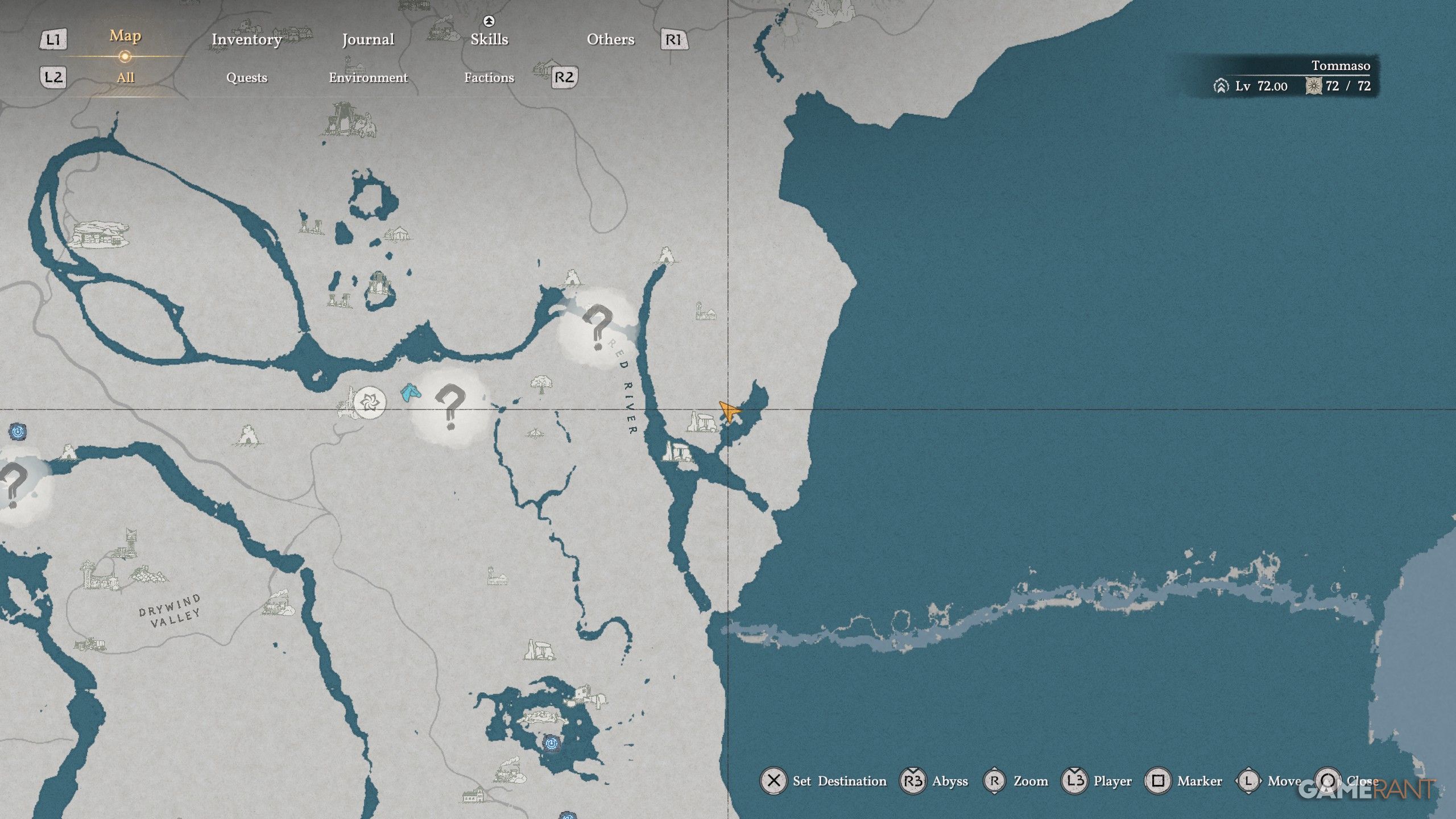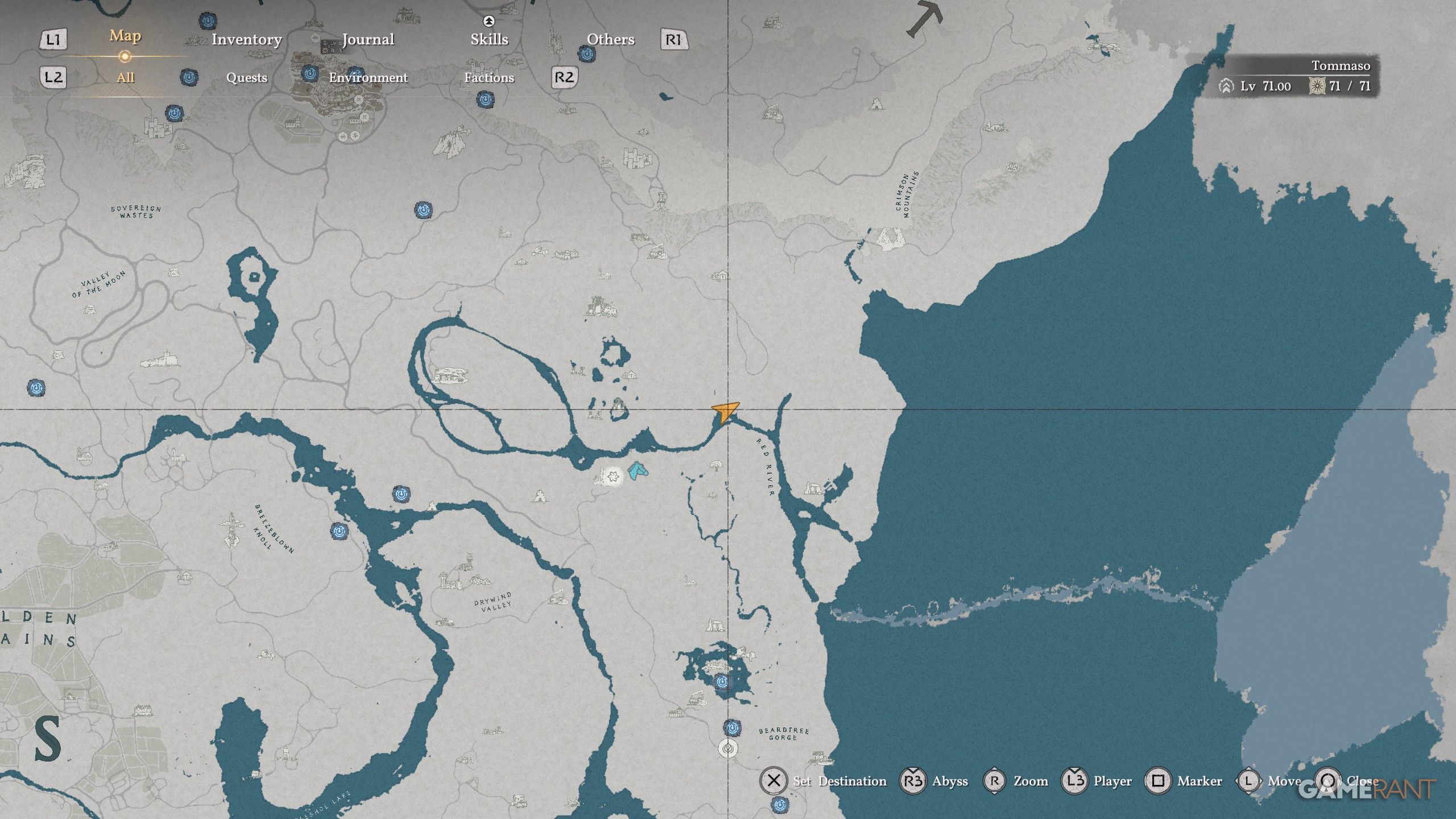 - At the halfway point of the waterfall’s edge, you can enter with Stab (R1+Triangle) to find a Treasure Chest with the Gloves.