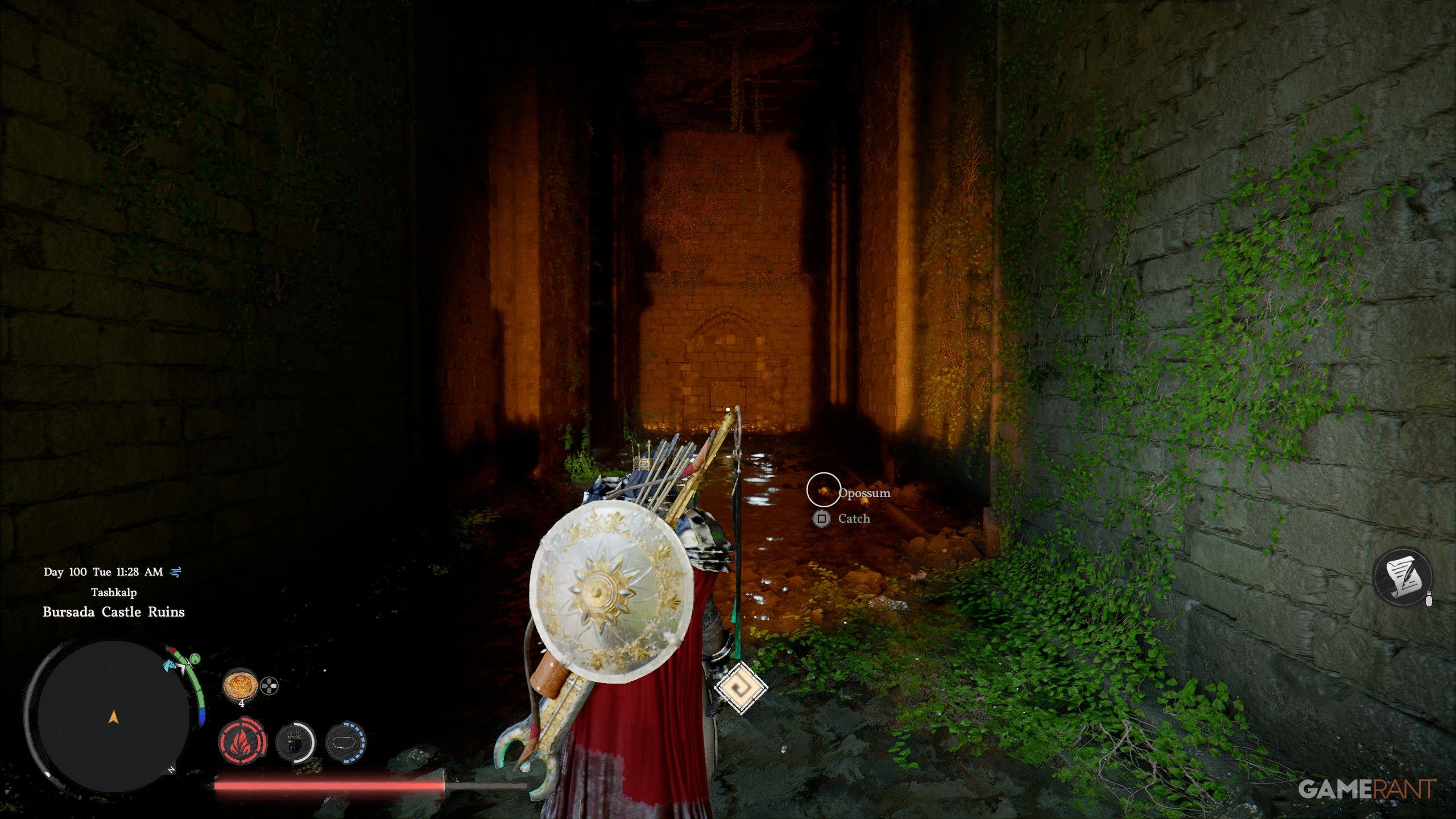- In the southeast region of the Crimson Desert, you can find the Bursada Castle Ruins. Head north through the large door just before the stairs upwards, and take a left to find a long corridor.