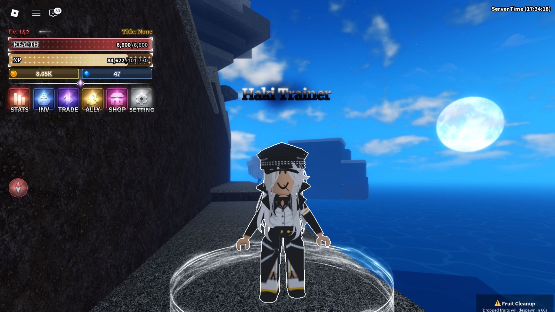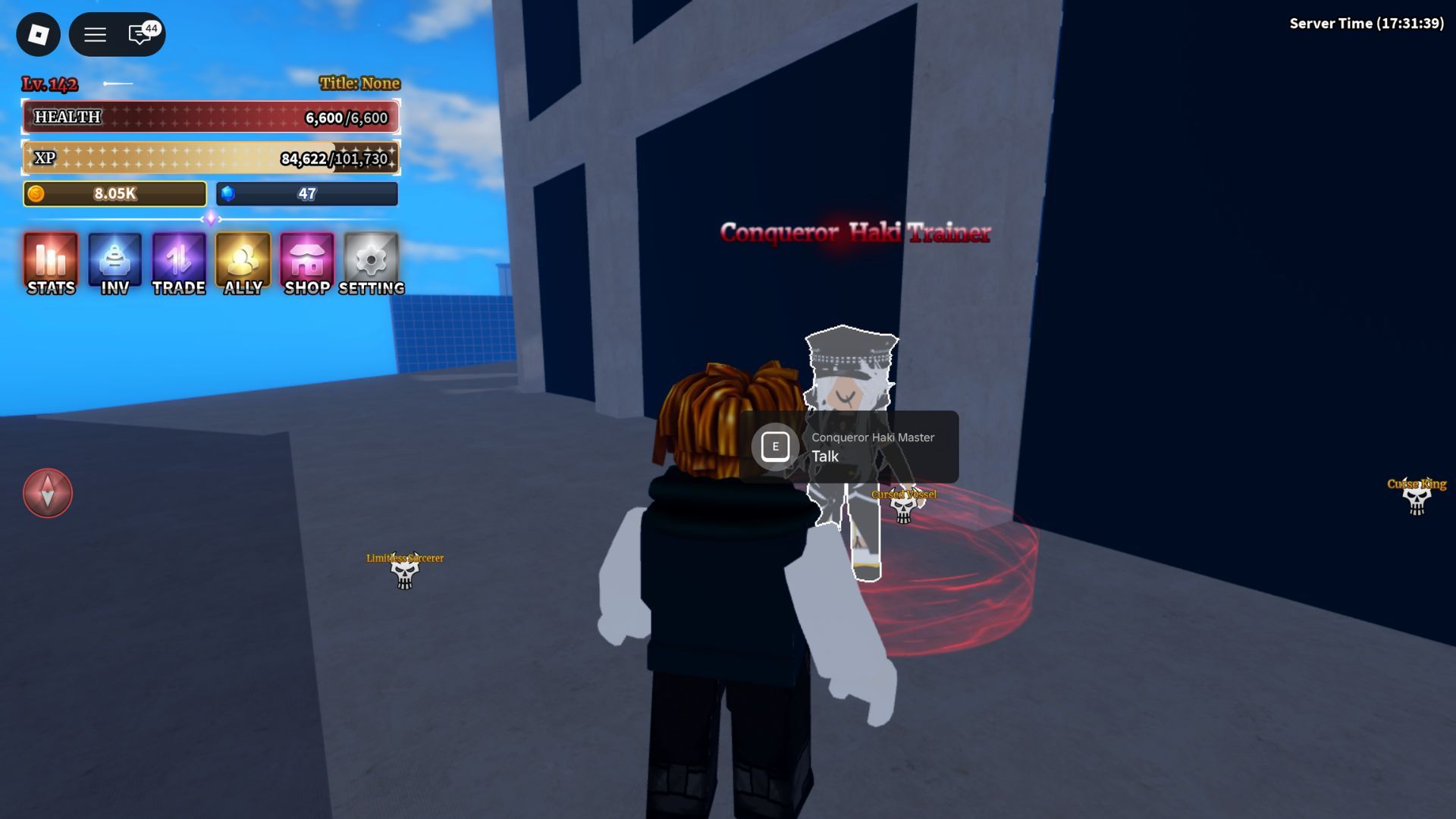 - Now teleport to Shibuya Station Island and find The Conqueror Haki Trainer.