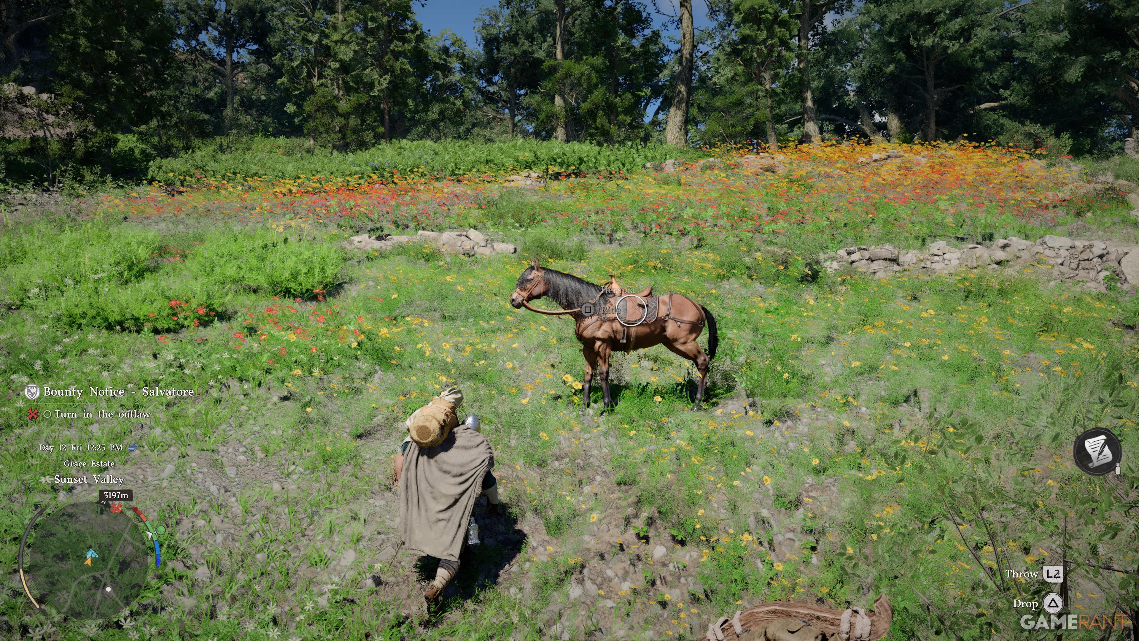 Once you have the captured person secured, lead them to your horse, get them on board, and start heading back to the jail in northern Hernand.