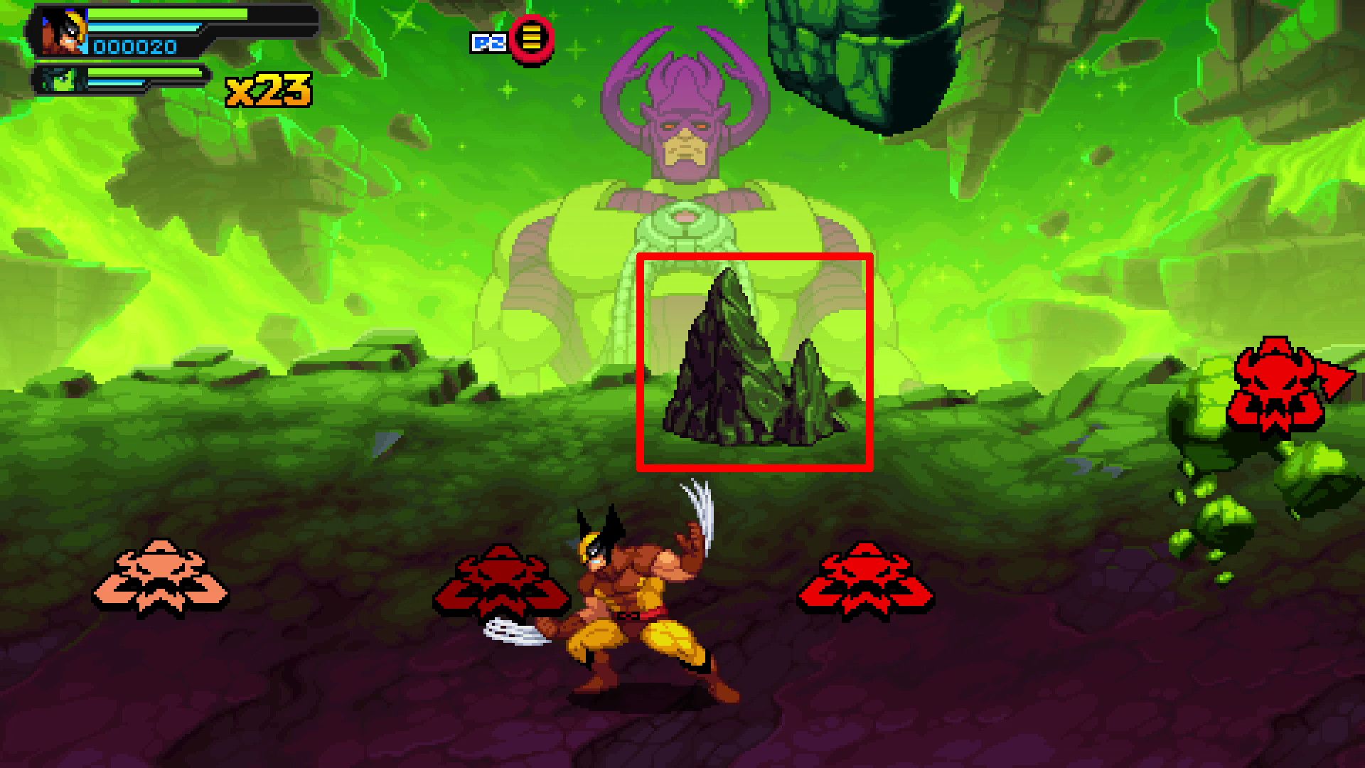 Image by William Parks / Game Rant Okay, so when you get to the part where Galactus is dropping rocks and those enemies show up in vehicles, focus on destroying the last rock in the back. If you break it, you’ll find a cube hidden behind it!