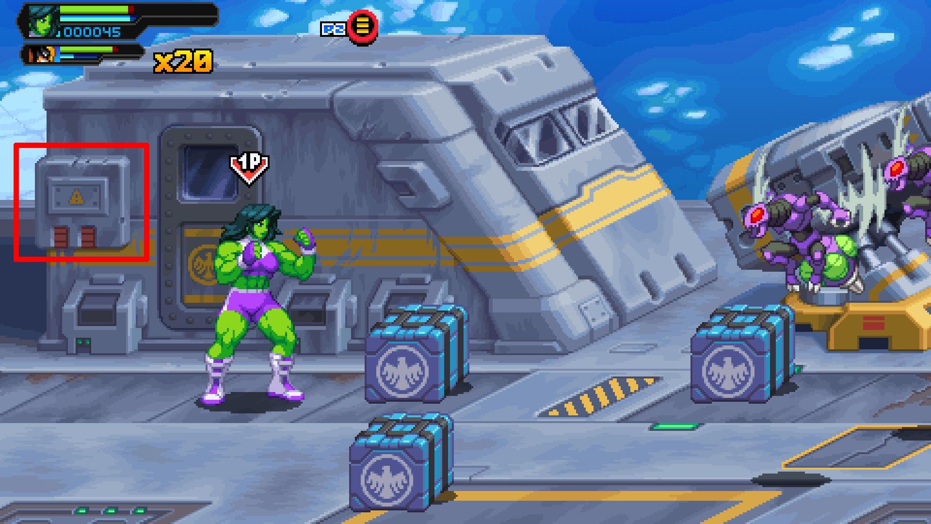 Image by William Parks / Game Rant Once you finish with the elevator, immediately attack the panel on the left side to make a green cube appear on the stage.
