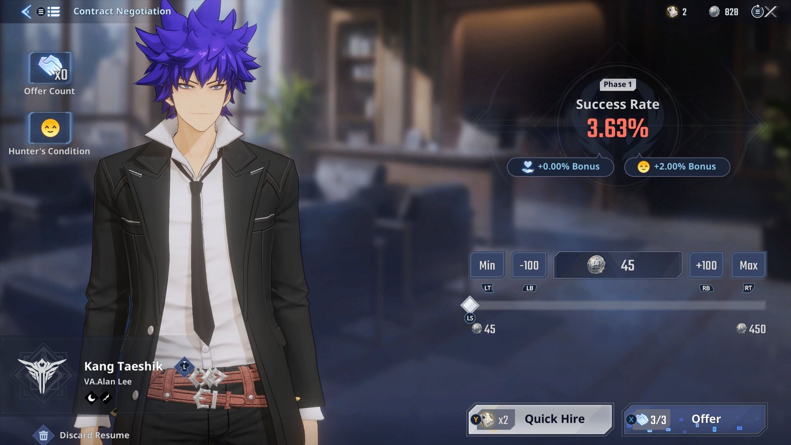 Think of this like a small game: you get three tries to make an offer to a hunter. You’ll see your chances of success displayed. If your offer isn’t accepted, you’ll get some Hunter Coins back, and your next offer will have a better chance of being accepted.