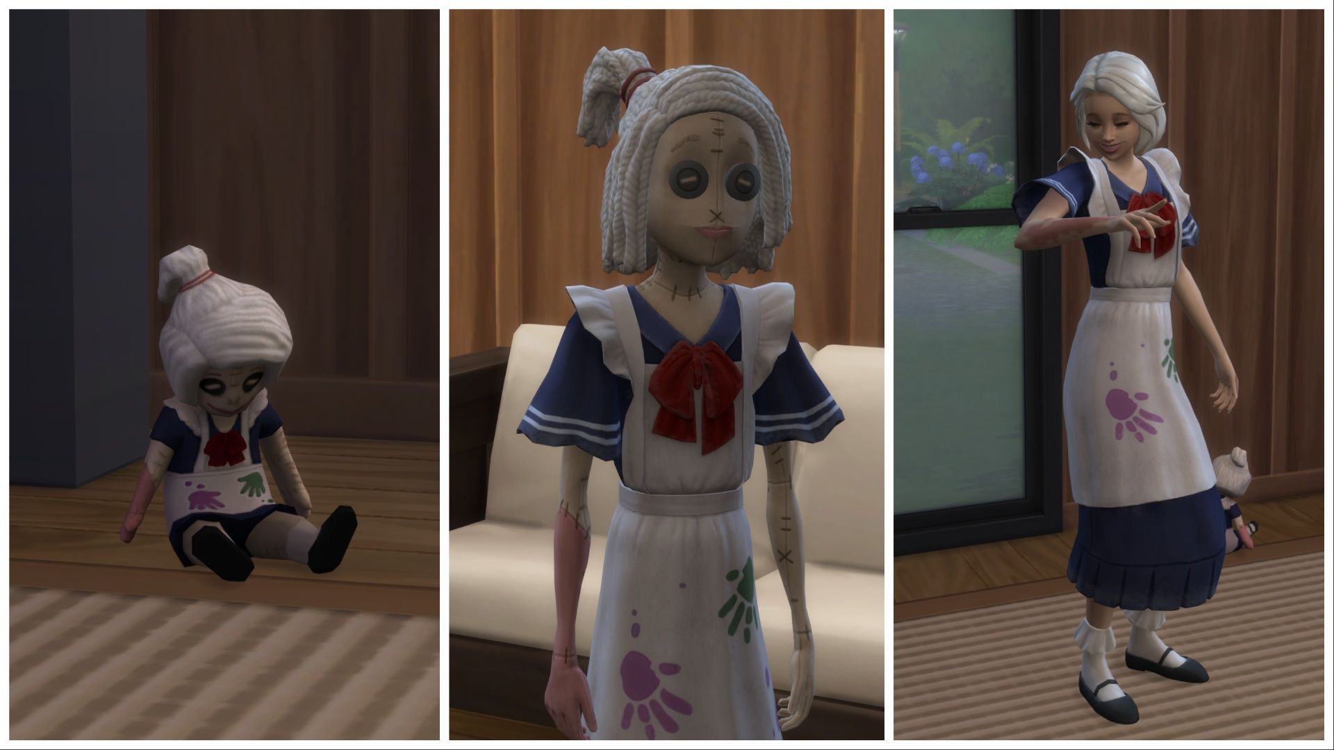 The Sims 4 features four ImagineMe! dolls, all of which can become imaginary friends. Before a doll comes to life, you can customize its personality using the pie menu. This determines how it will behave as an imaginary friend. Each doll starts with a unique trait and personality, so they’ll all be a little different!