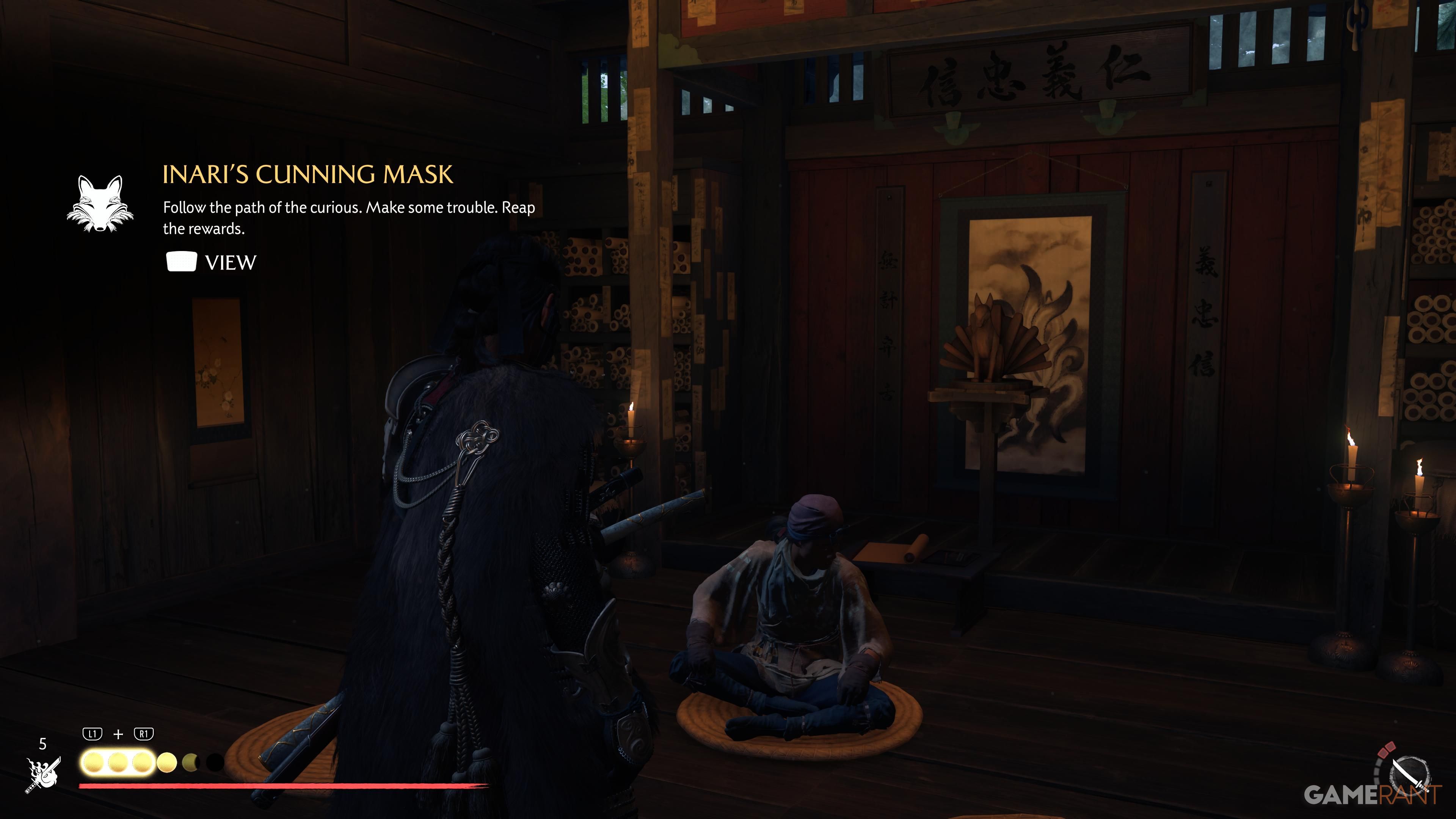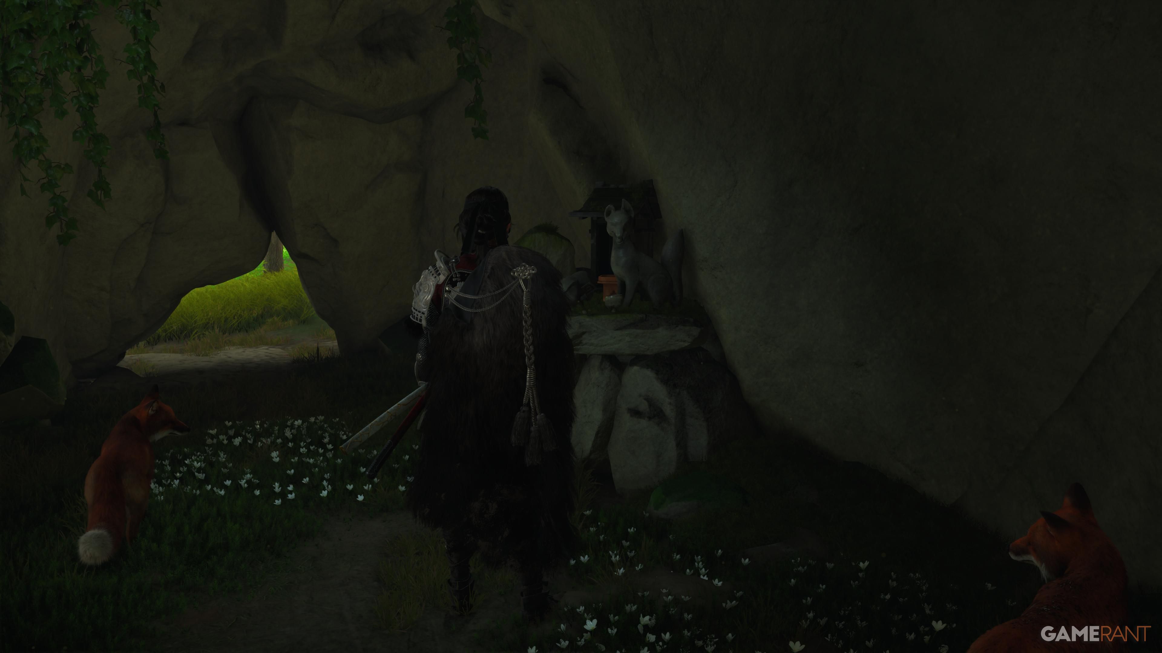 Release the fox here, then follow it to the Sanctuary Grove. Head towards the house and speak with the Settler to complete the quest. Afterward, you can follow the deer to a nearby Altar of Reflection. Once finished, talk to the woman again – she’ll reward you with Inari’s Cunning Mask, and you’ll also unlock a trophy.