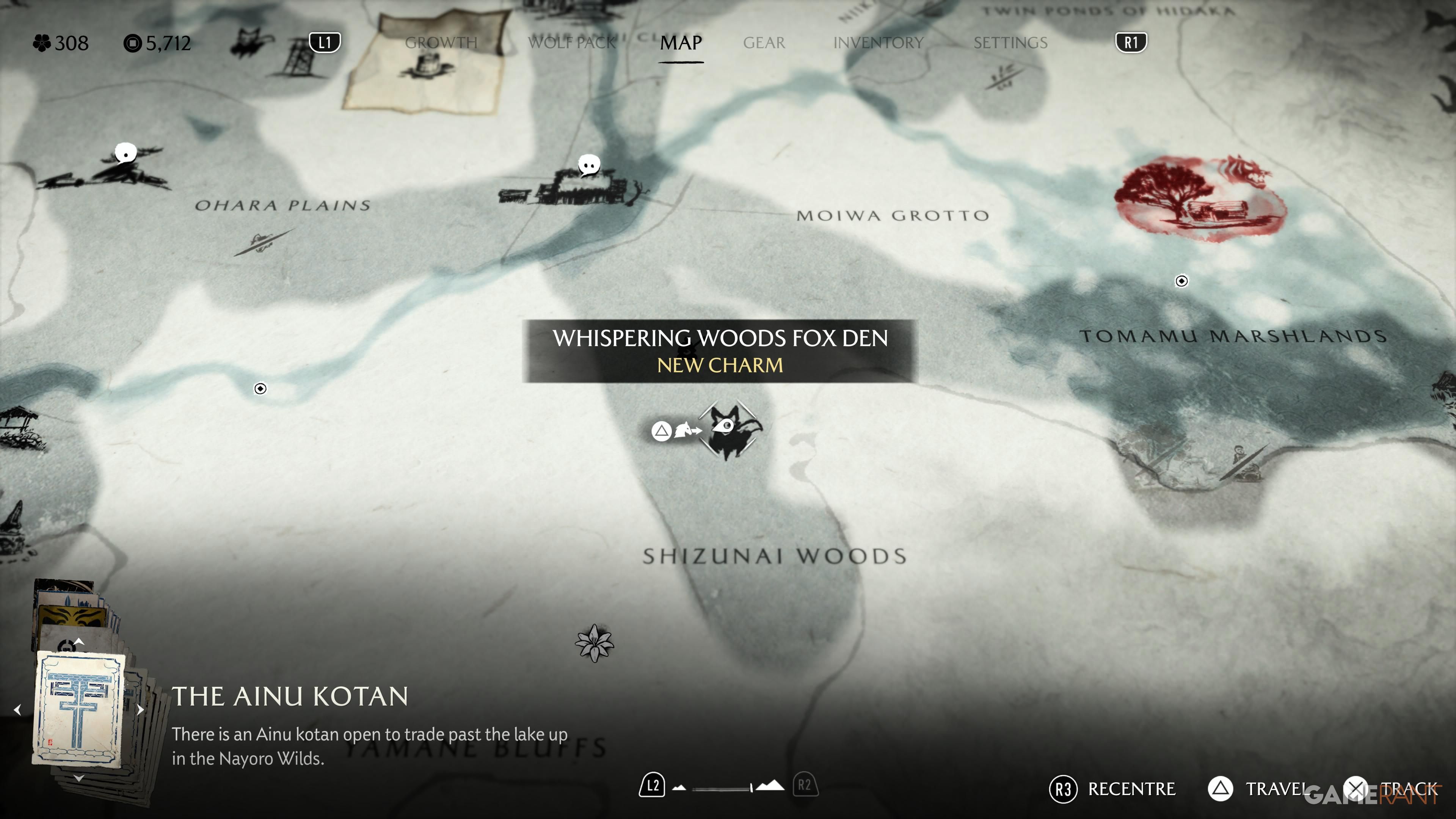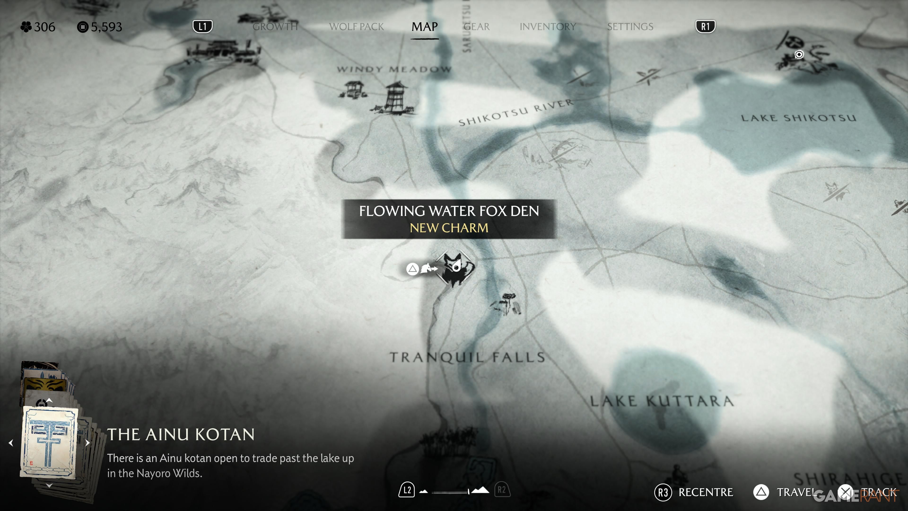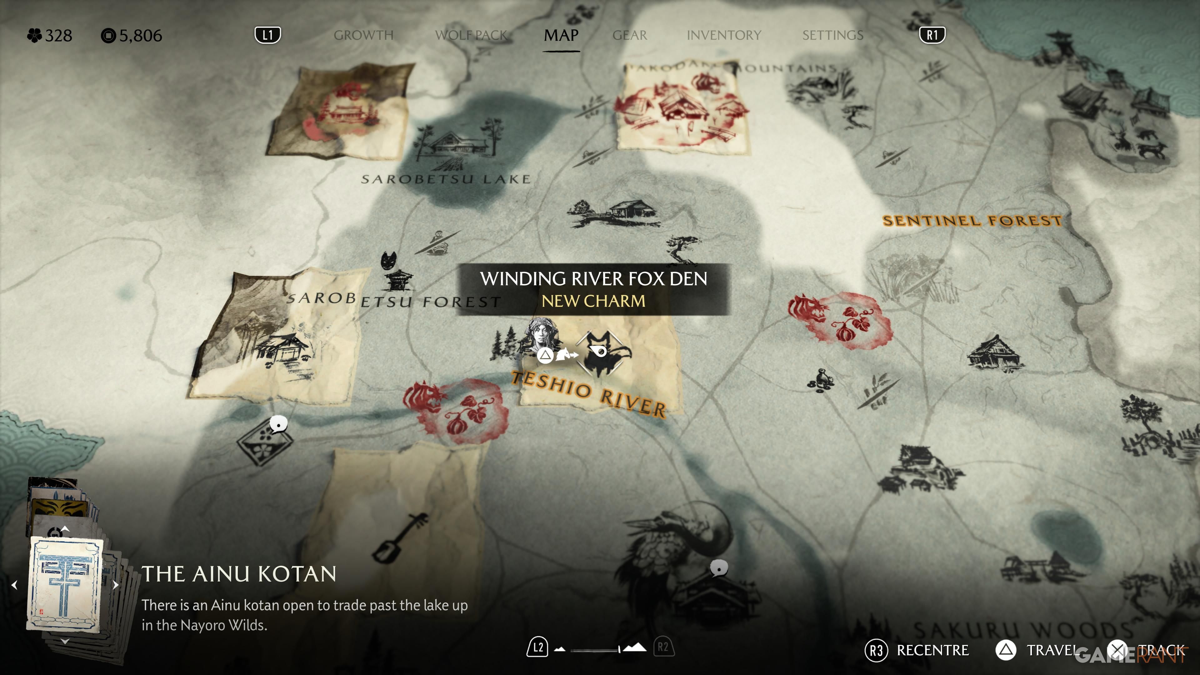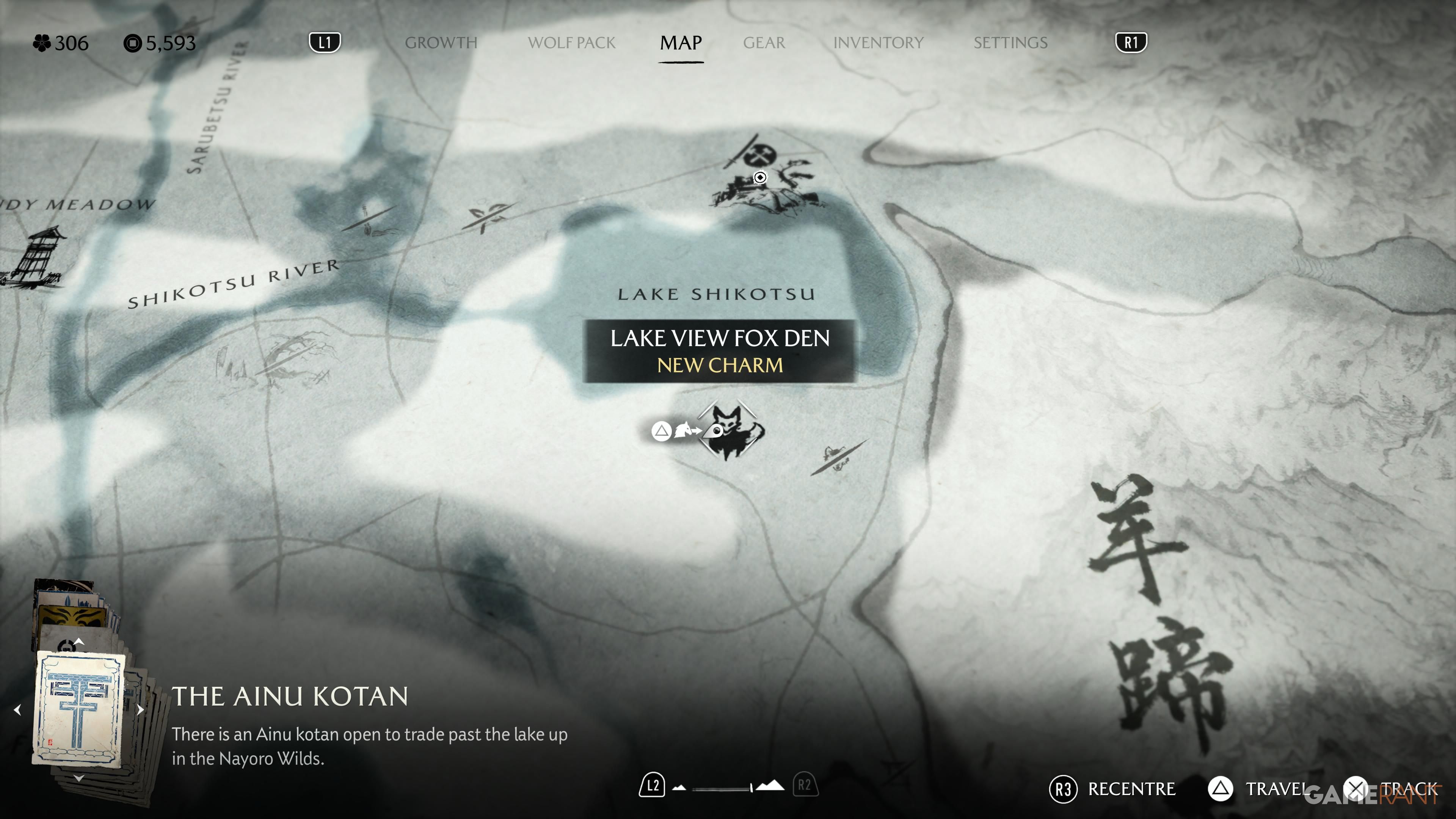 Charm of Uncanny Aim | The first Fox is directly below Lake Shikotsu on the map. You must follow the orange fox as it leads you to another fox that you must free. After that, it will lead you to the Inari Shrine, where you can bow down for the charm. |