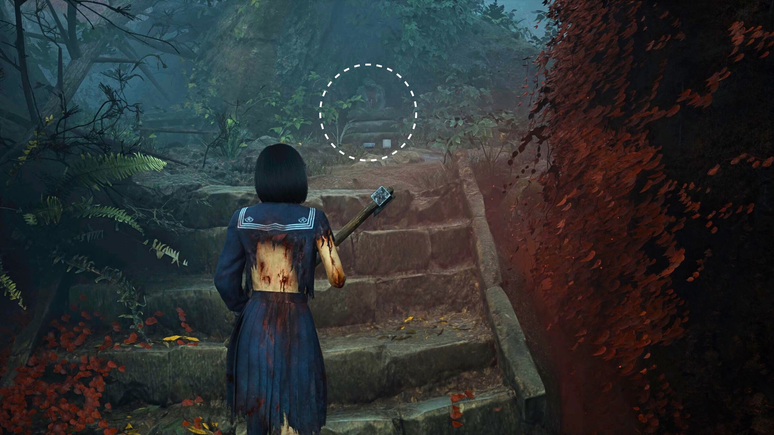 Now, leave the courtyard and walk back a short distance. Look for the fifth Jizo statue – it’s to the left of the house, at the top of a small set of stairs. Place the Dad’s Old Kitchen Knife on the statue. After you’ve offered the last item to the Jizo statue, Hinako will become mesmerized and instruct players to go to the Divine Tree. This is where they will obtain the Sacred Sword in Silent Hill f.