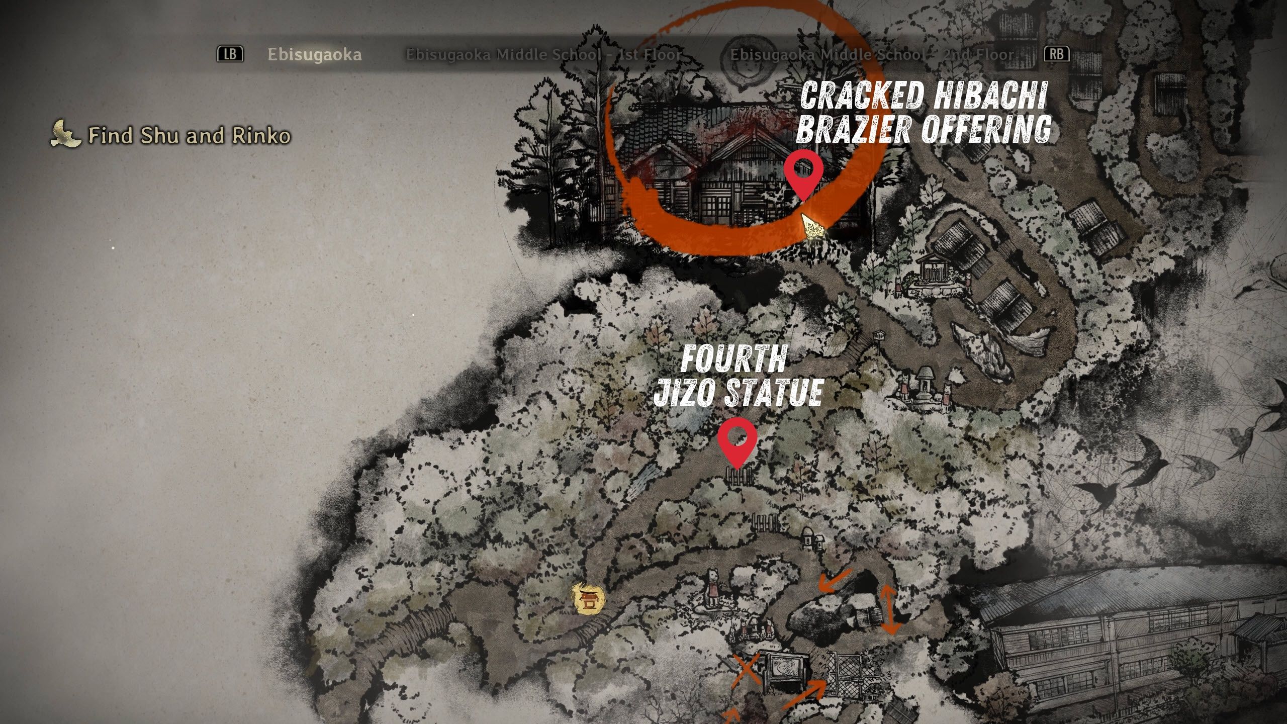 Return to the path you used to get to Hokora Shrine, the one before Shu’s house. As you walk back, you’ll see the fourth Jizo Statue just before a Tori Gate on your left. All you need to do is interact with the statue to place the Hibachi Cracked Brazier beside it.
