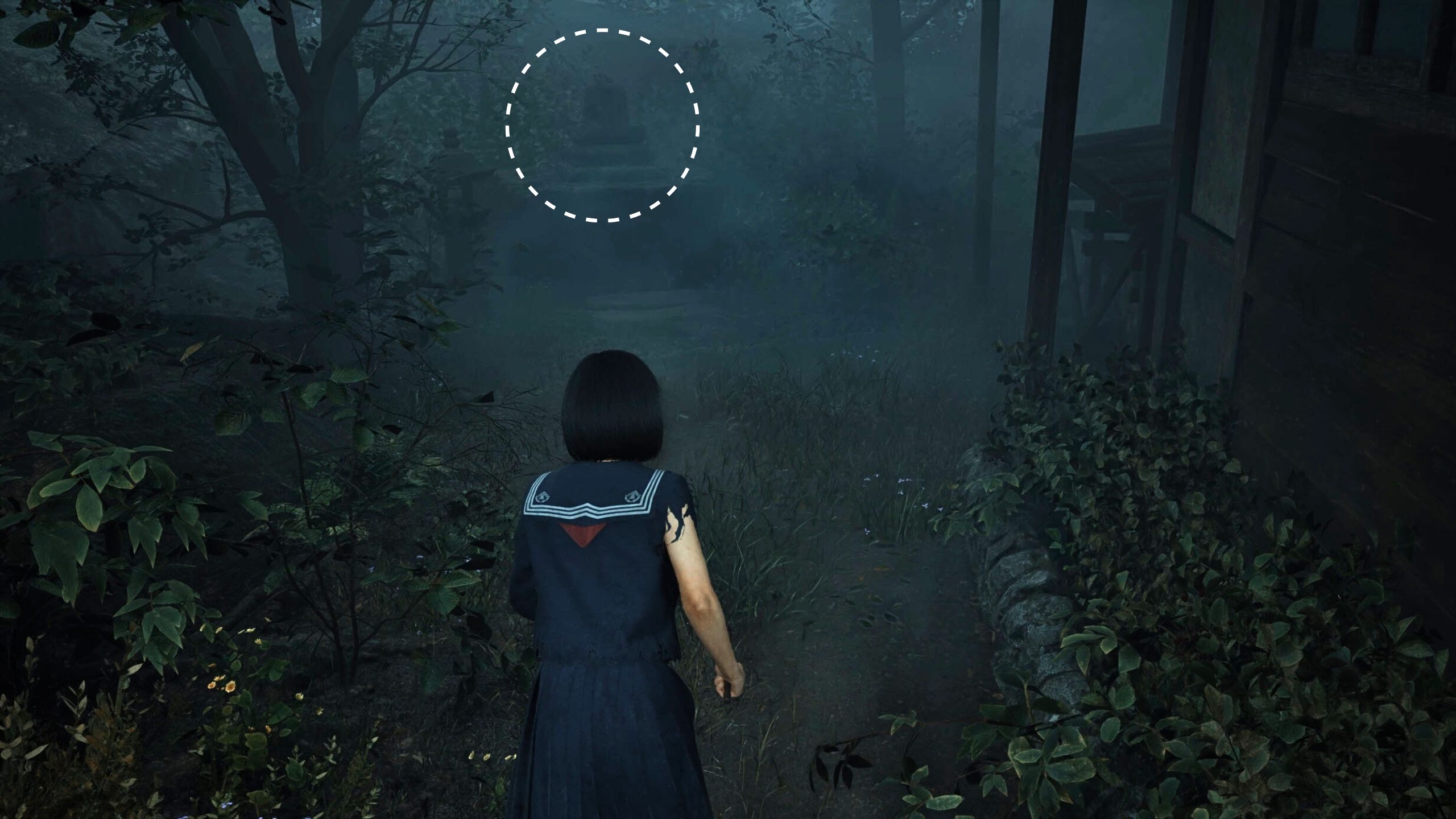 After leaving Hinako’s house at the start of the game, continue along the path until you reach the first Hokora Shrine. From the shrine, turn left and follow the path until you see a house with an open door. As you get closer, you’ll also hear creepy, quiet laughter (and you’re not imagining it!).