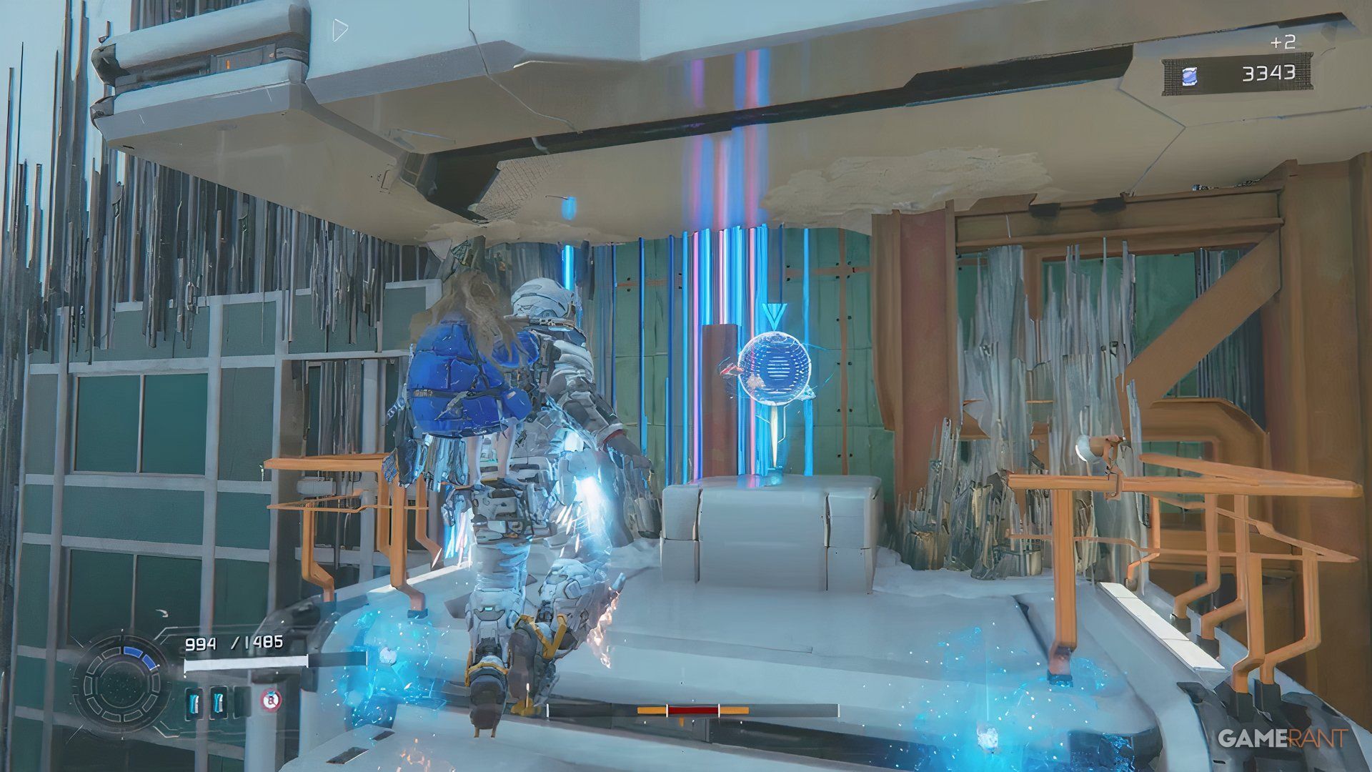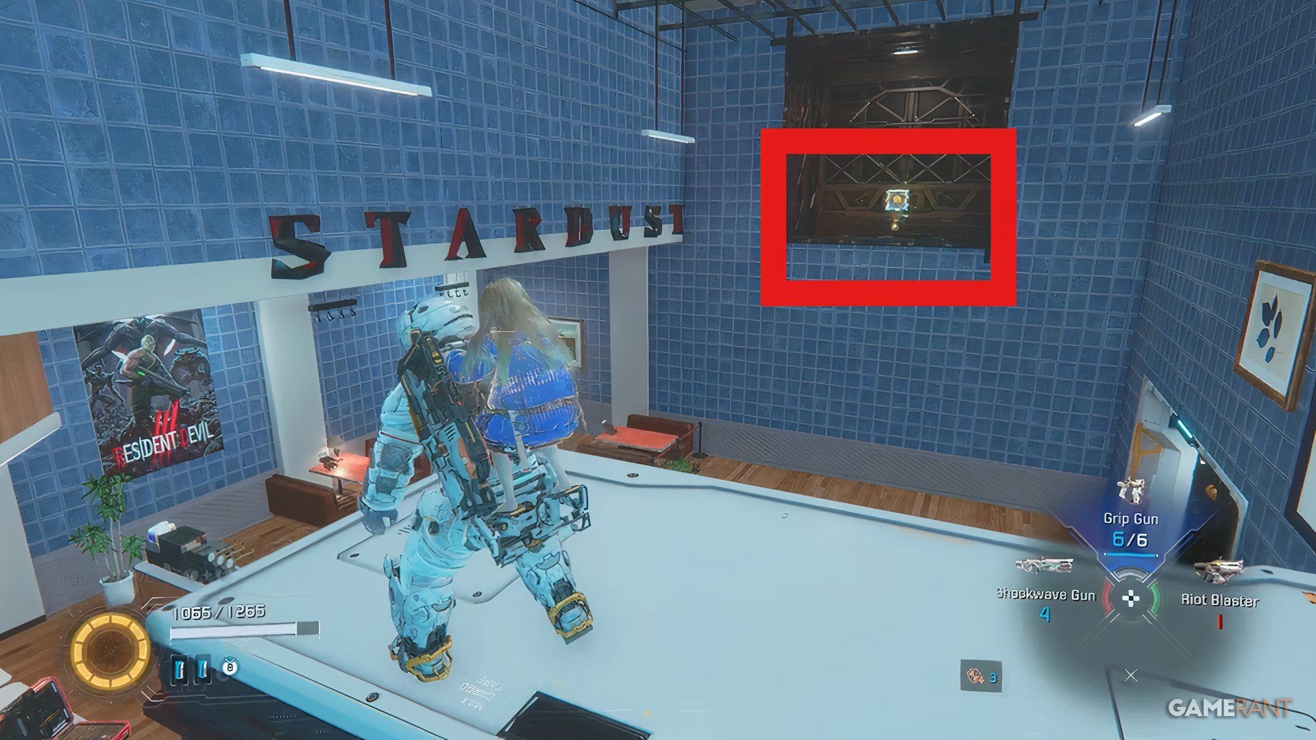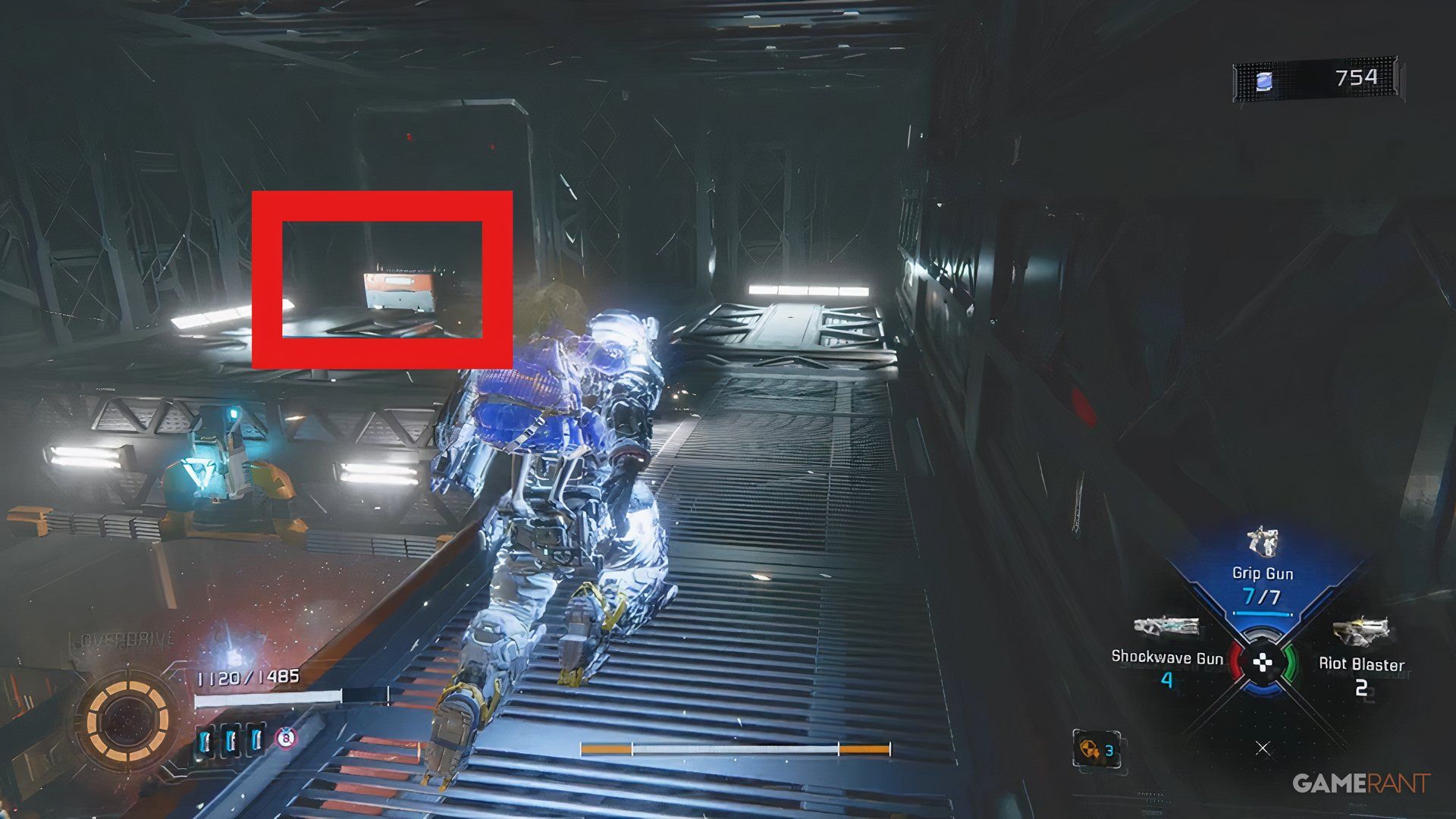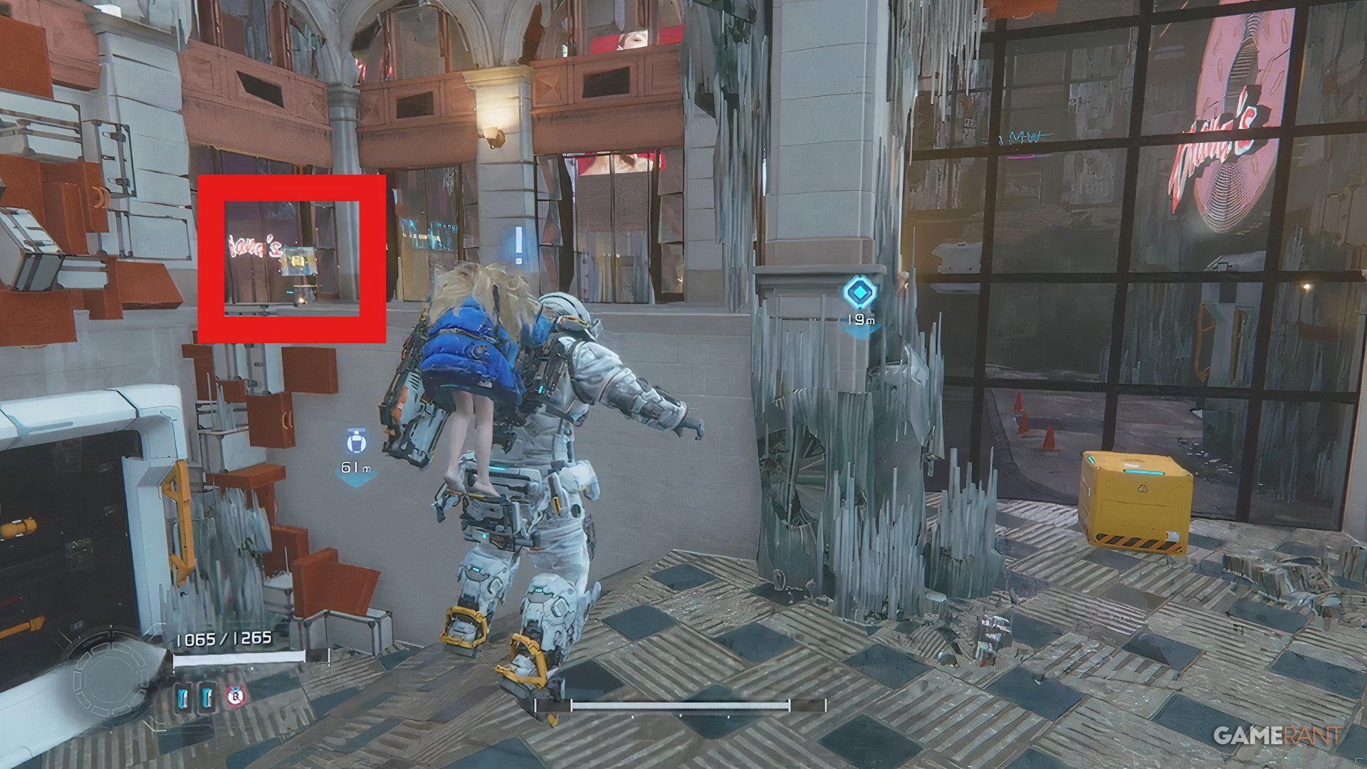 Once you’ve looked at the mannequins with Diana, turn around and you’ll see a hallway filled with lasers. Beat the robot that shows up, then use the zipline on the left to get to the blue chest – it has the Extended Breach mod inside.
