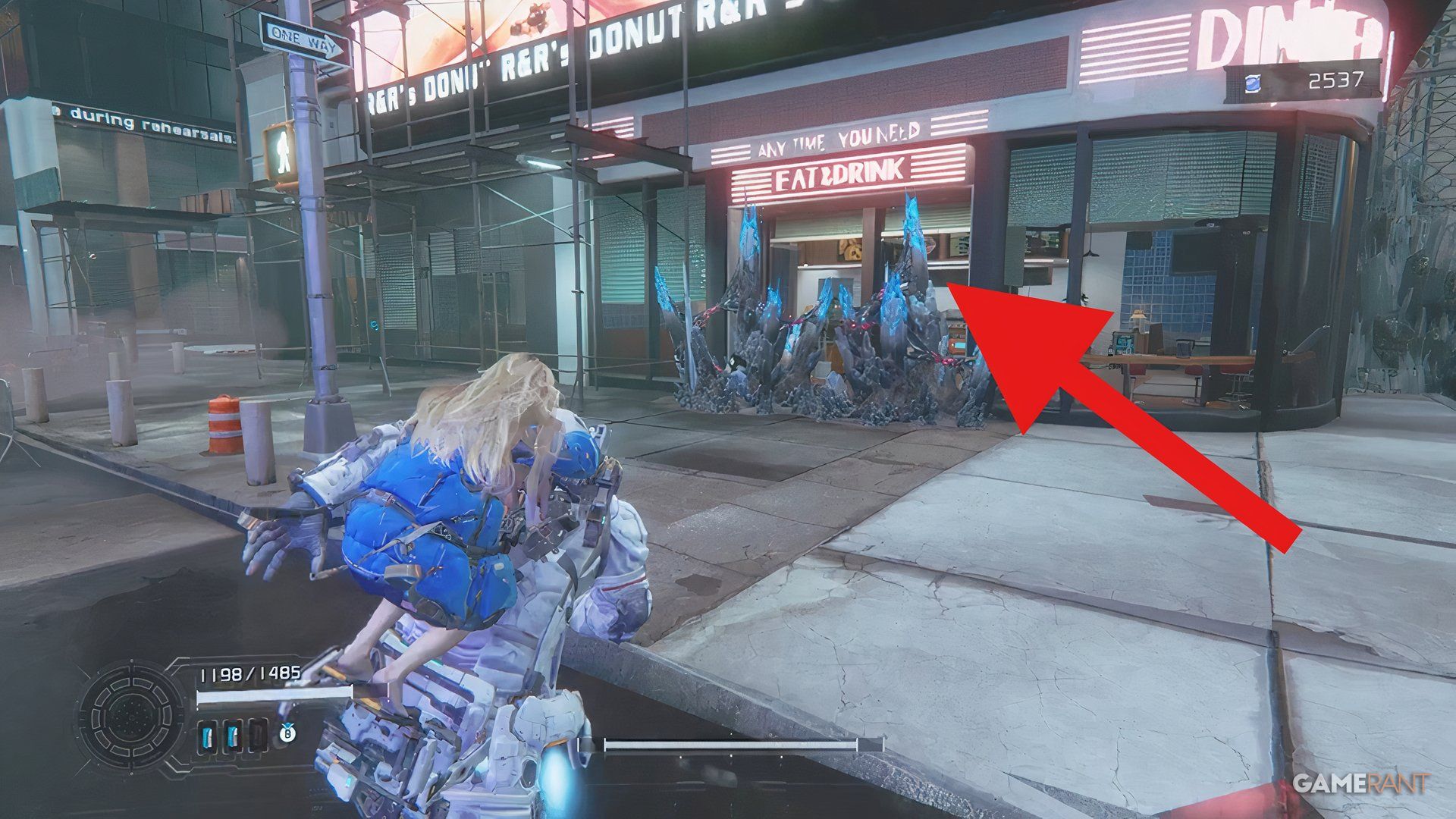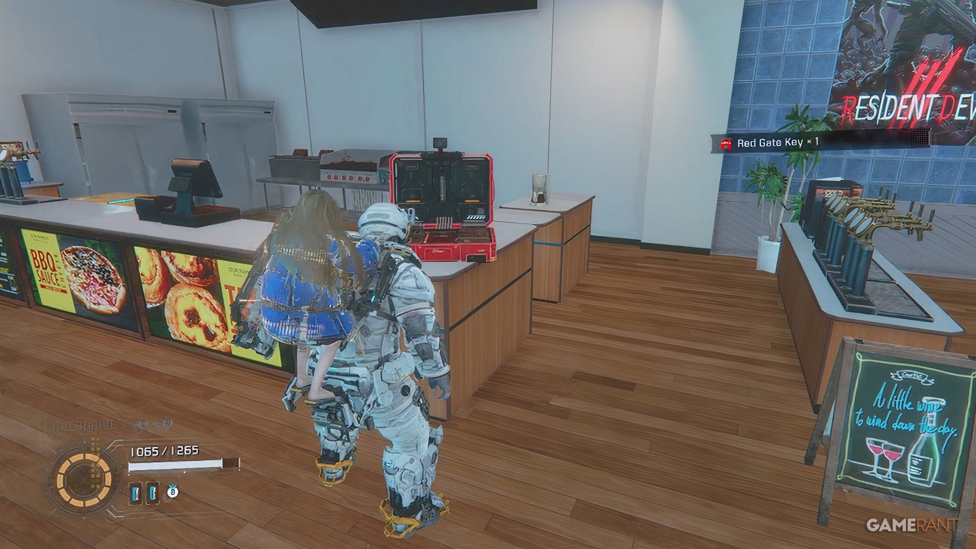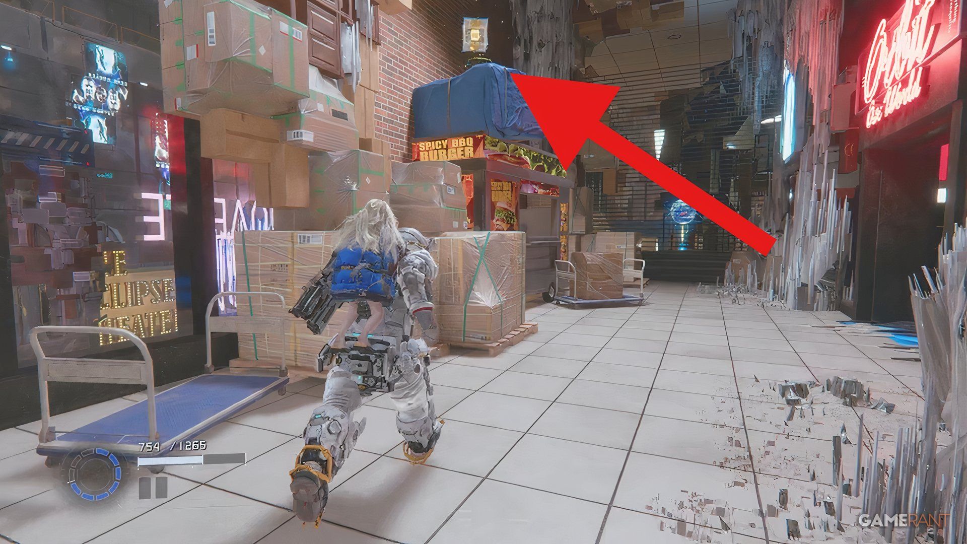 Once you’ve opened the door with the hacking tool, you’ll find another Upgrade Component on a nearby burger cart.