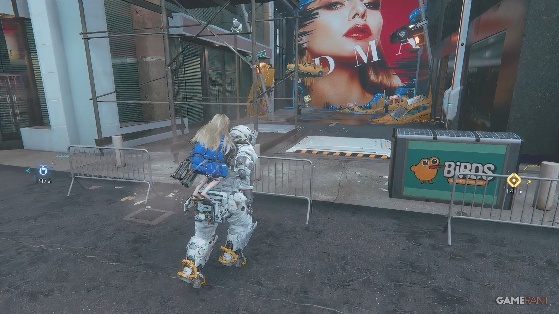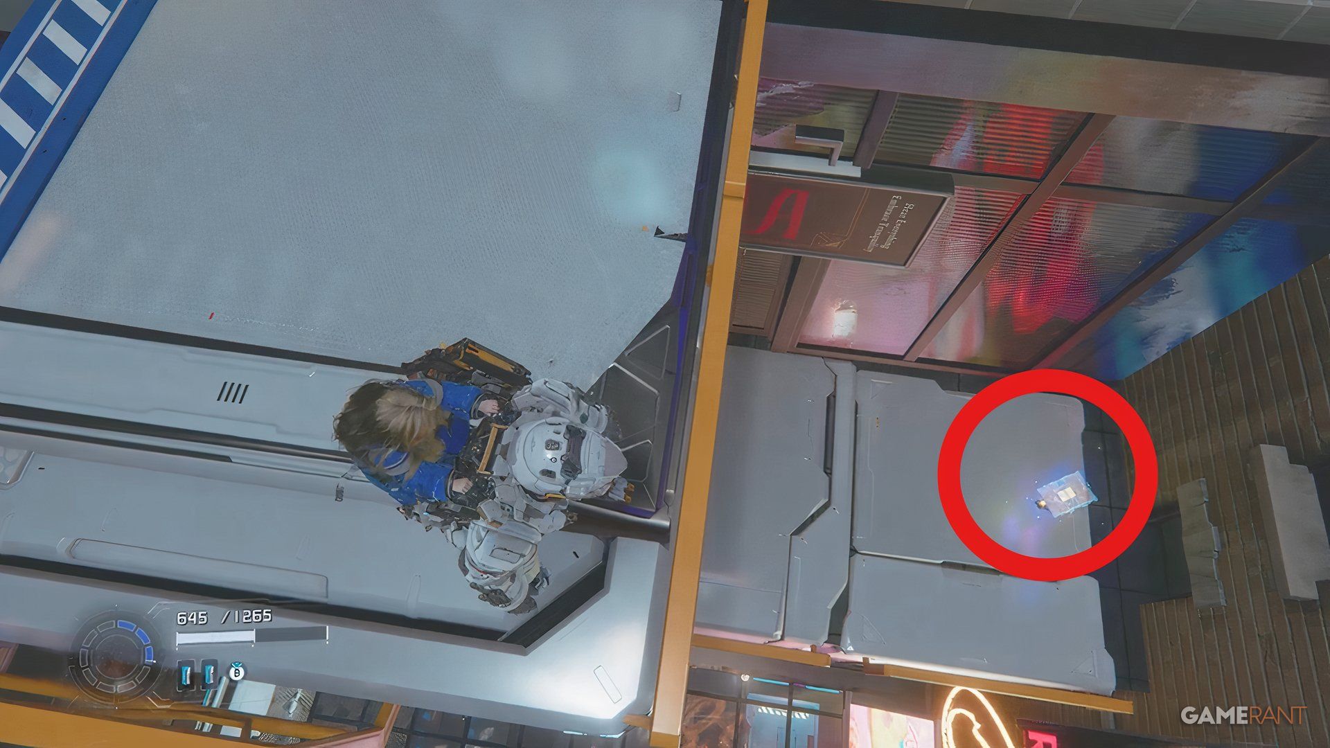 Continue walking through the square, and then turn left. You’ll see a big billboard with a woman in red lipstick, and right in front of it is the Upgrade Component you’re looking for.